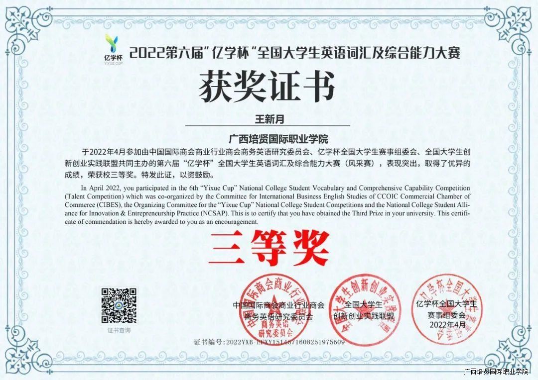 近日,我校外国语学院商务英语专业学生在2022年第六届“亿学杯”全国大学生英语词汇及综合能力大赛中表现突出🙍🏽♂️,分别荣获14个省级奖和8个校级奖🪞。本届大赛沿用往届赛事的纯线上模式🛞🧝♂️,并针对往届赛事进行优化,进一步扩大赛事实用性✍🏻、专业性🤙🏿、包容性☔️🏖,丰富赛事赛道,多标准化赛制,提供给学生更多选择和参与方式。