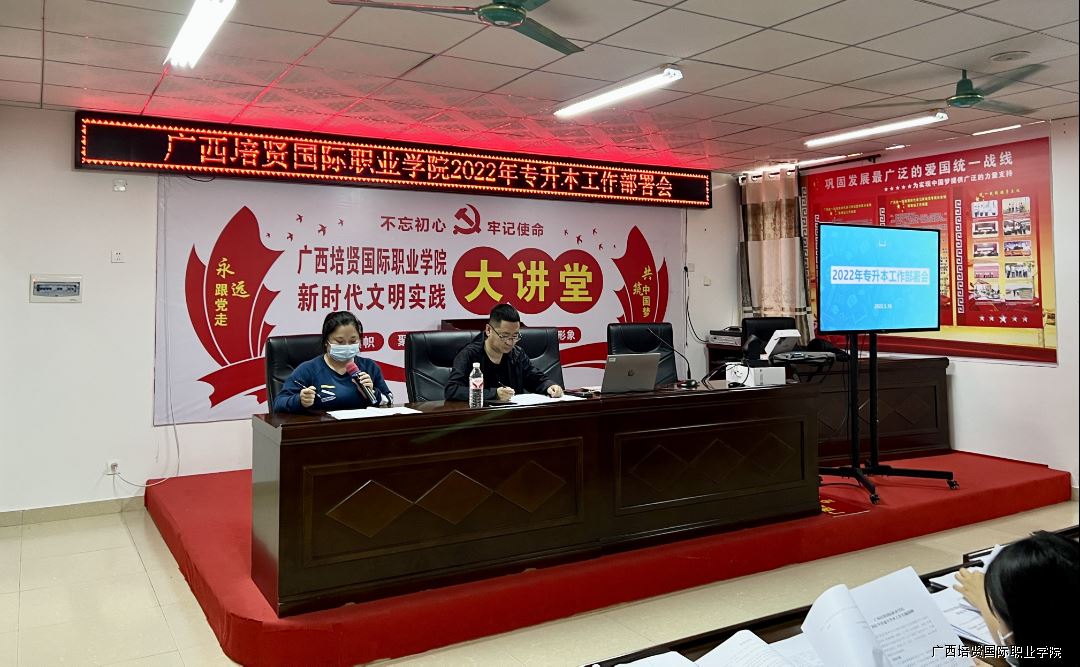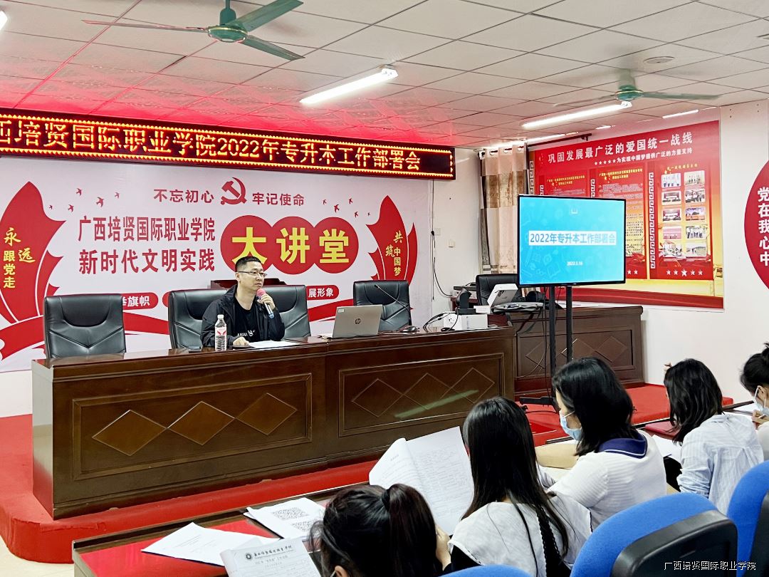 根据《自治区教育厅关于做好2022年全区普通专升本招生工作的通知》(桂教高教〔2022〕17号)文件有关精神,为做好我校2022届毕业生“专升本”报考服务工作,5月16日下午,我校组织召开2022年“专升本”专项工作部署会议,副校长于灏洋,各二级学院负责人𓀀、教务处、学工处征兵办、资助办、二级学院教务科老师及2019级全体辅导员参加会议。