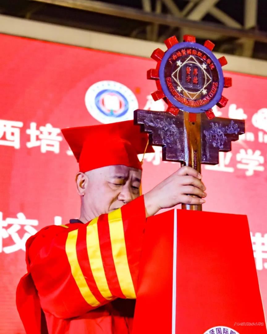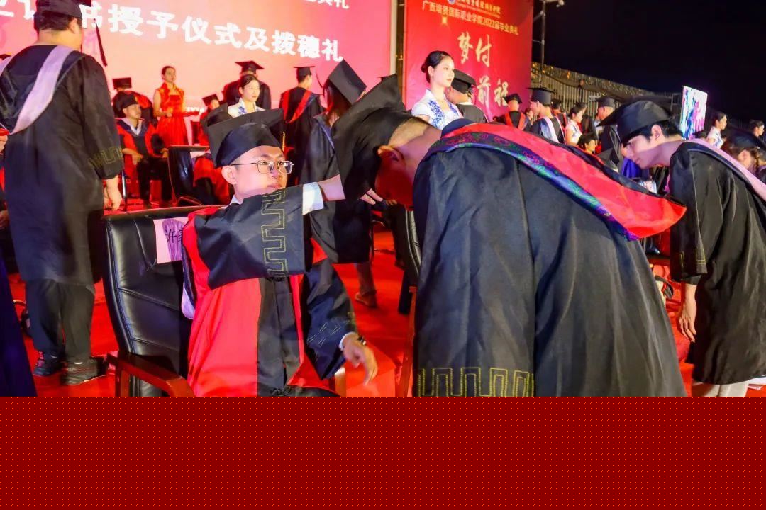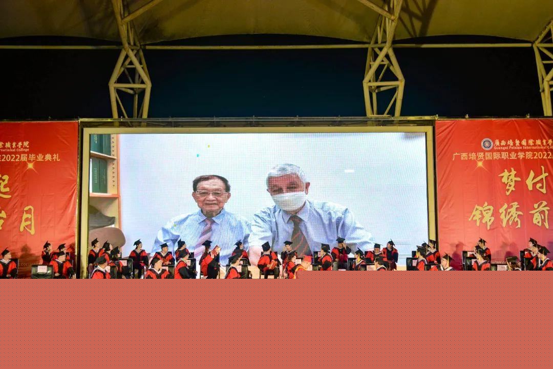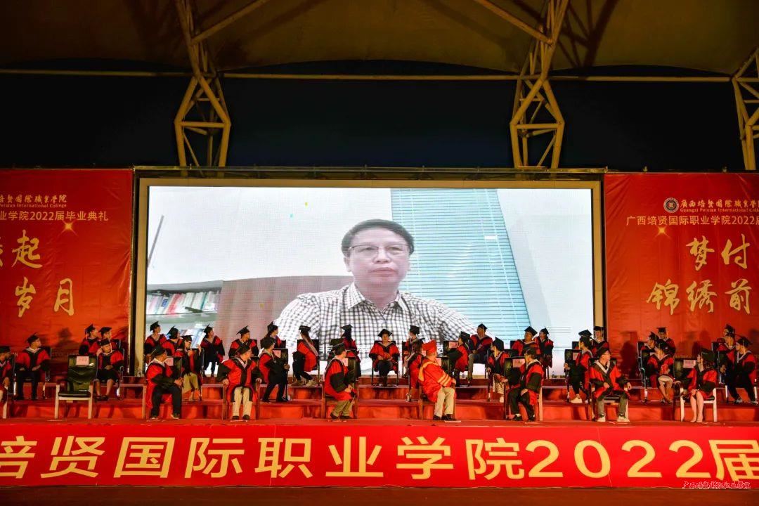 6月30日晚🚧,我校在田径场隆重举行2022届毕业生毕业典礼。学校校长林宁教授,平果市大学园区管理服务中心党组书记、主任许安著,学校党委书记、督导专员王勇,学校特聘顾问万辅彬👰🏽♀️,学校副校长于灏洋,副校长李锡武🧖🏿,副校长许家瑞👩🏽,副校长陆蓝莎✍️🧑🏿,助理校长陈艳秋,董事长助理陈雯雯🔨,外籍教师艾迪出席毕业典礼。各二级学院领导👩🦼、家长代表、校友代表🐶、2022届毕业生以及全体在校师生参加毕业典礼⛈。毕业典礼采用双语(中英)主持兼云端直播模式,“线上+线下”齐贺毕业盛典,领导主持是学校副校长许家瑞,学生主持是莫雅程和杨涵之。