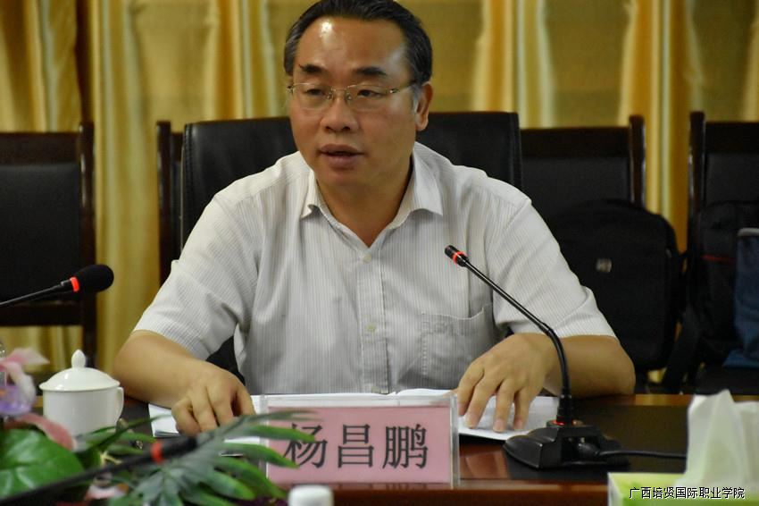 我院领导热情欢迎广西农业职业学院校长杨昌鹏(前排)为组长的民办高校年检专家组