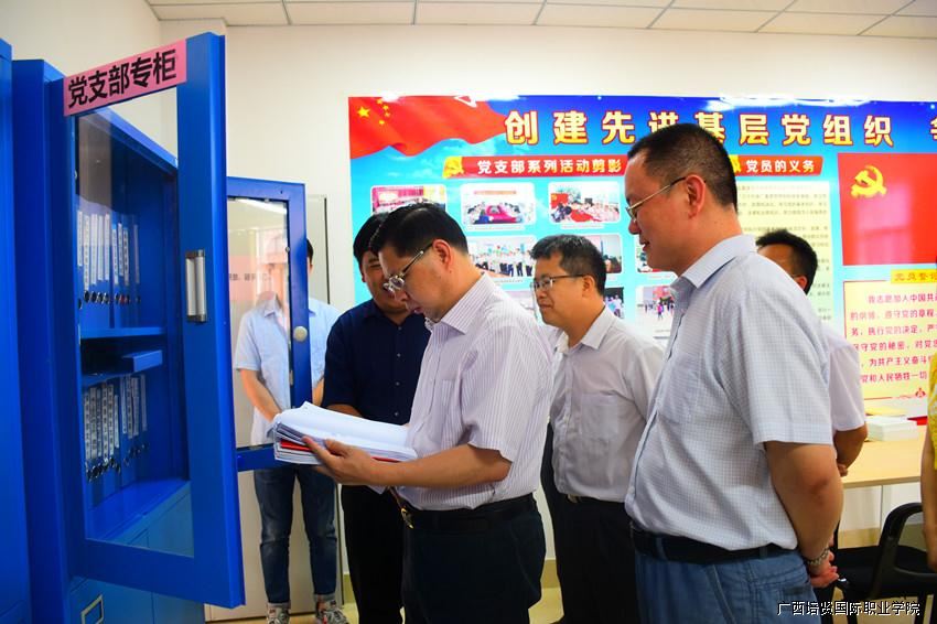 2017年6月7日下午,由自治区两新组织党工委专职副书记刘水玉、自治区两新组织党工委社会党建处处长孙红等组成的党建工作督查组莅临我院督查指导党建工作,在市委组织部副部长杨序勇、市教育工委委员梁富文,我院副院长兼党支部书记黄勇学、党支部副书记郭玉针、党支部宣传委梁蓝陪同检查♟。