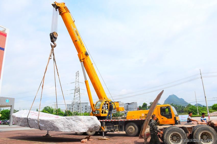 施工环节中🧑🏼💻,施工人员用吊绳固定好文化石,吊机夹紧文化石缓缓放置到校门地基处,因为重大60吨的文化石,运输以及放置的过程很艰难。但经过我院领导和工程师的现场指导,施工人员已顺利地放置文化石。目前为初步的放置⇾,后期将会继续完善、美化放置处。