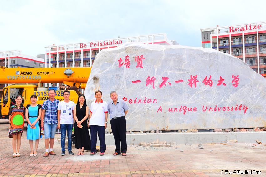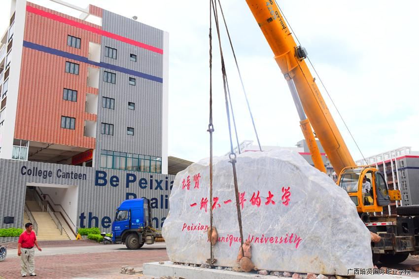 2017年6月29日上午👂🏿,我院校园文化建设又添新亮点——文化石,精心布置了一块形状奇异的文化石🔺,石刻景观成为校园一道亮丽风景线🧑🏼🌾。校园文化石高3.5米👡,长7.2米,重达60吨,双面分别镌刻着字体。正面刻着“彩神办——所不一样的大学(peixian—A unique university)”🎷,背面刻着“今日彩神学子,明日国家栋梁”。我院副董事长区寿本博士、副院长陆秋利等领导亲临现场见证重达60吨的文化石成功放置到校门处令人倍感震撼和激动的整个现场过程👈🏽。