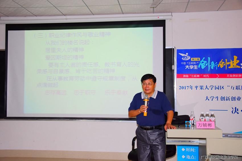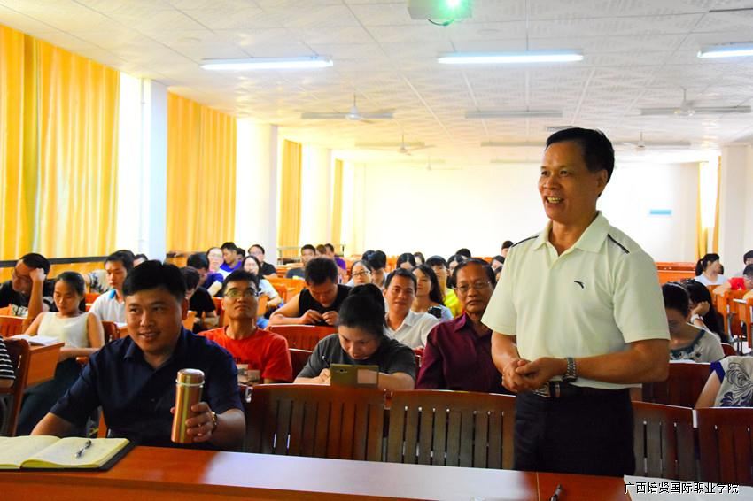 为了提升我院教师队伍的职业素养🙅🏻‍♀️,激发教师有关职业素养自我思考,2017年6月22日👮🏼‍♂️,我院特邀特聘教授万辅彬开展“关于高职院校青年教师职业素养提升的思考”的主题讲座。我院副院长黄勇学、陆秋利、财经管理学院院长黄飞、外国语学院副院长梁蓝以及全体教师参加此次讲座✤。