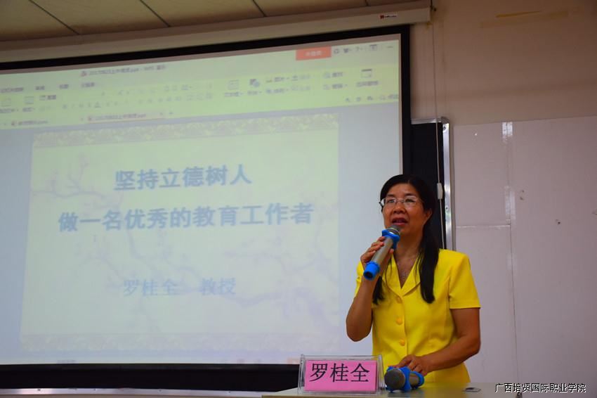 2017年8月24日下午,广西彩神国际职业学院在学术报告厅举行师德师风培训,邀请广西工业职业技术学院党委副书记罗桂全做题为“坚持立德树人👳🏻‍♀️,做一名优秀的教育工作者”的讲座👨🏼‍🔧♻。学院副院长黄勇学🤾‍♀️🥼、副院长陆秋利🤟🏿,院长助理陈雯雯🥘、财经管理学院院长黄飞及全体教职工参加培训🤨。