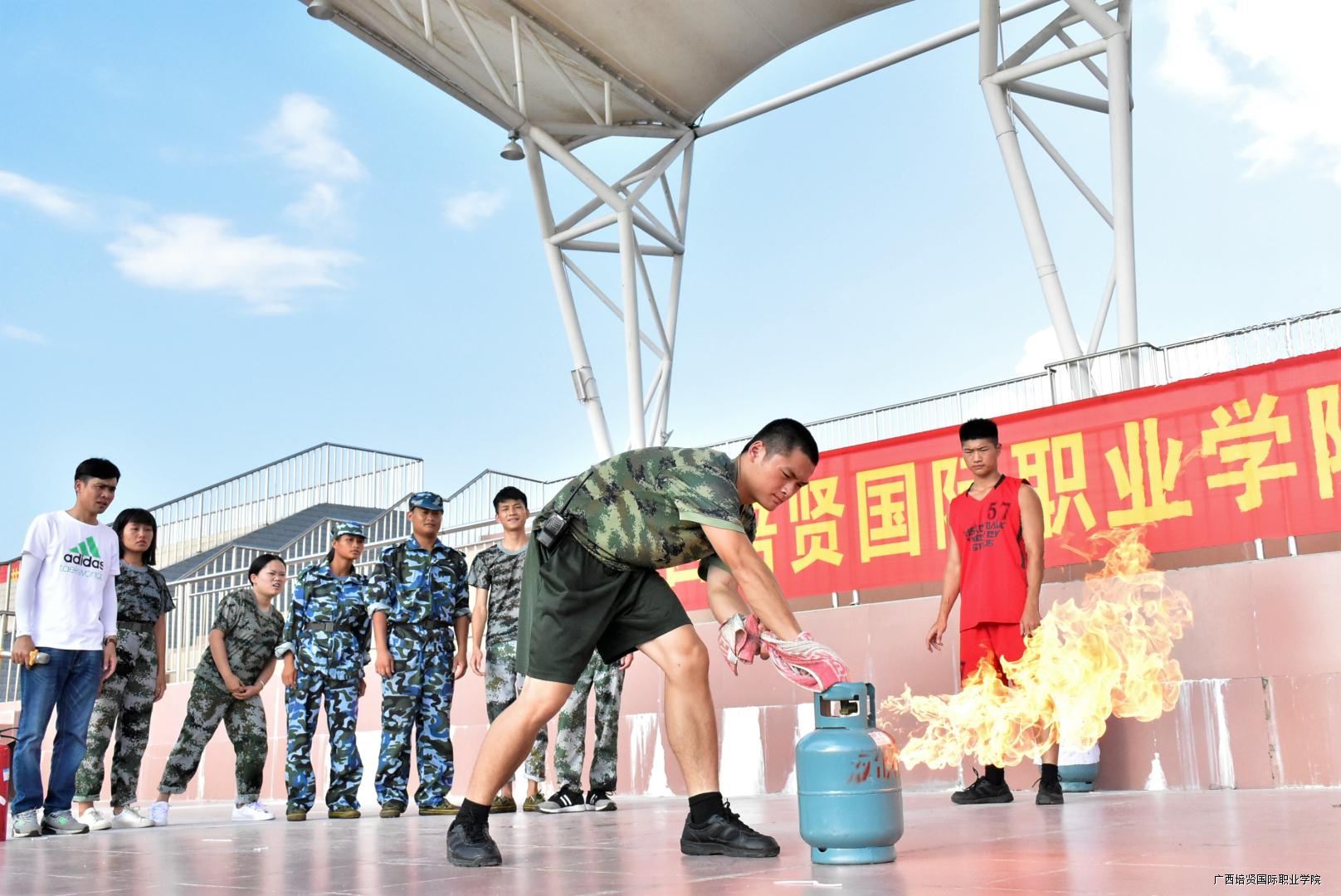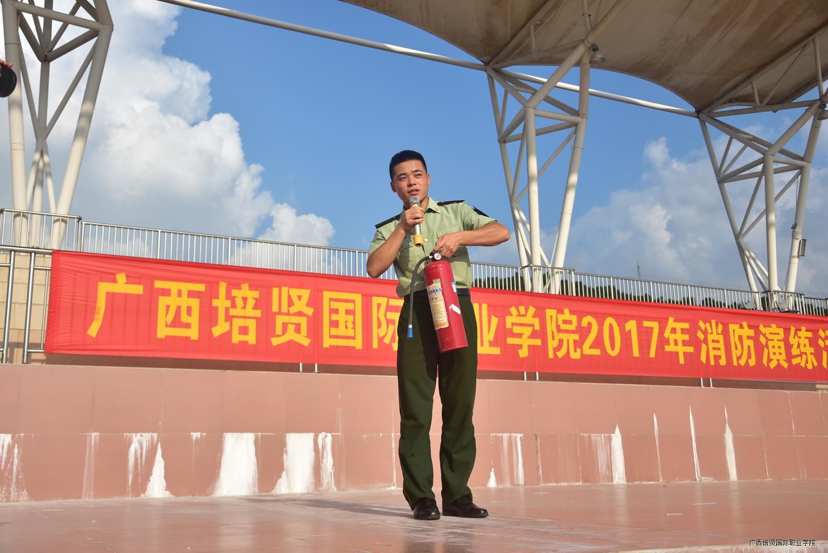 在演练现场🌒,武警百色市消防支队平果中队的中队长胥磊认真、仔细地向2017级学生讲解了消防知识和灭火器的正确使用方法,以及遇到煤气罐着火这种紧急情况该如何处理,并现场模拟煤气罐着火,示范灭火的正确动作。