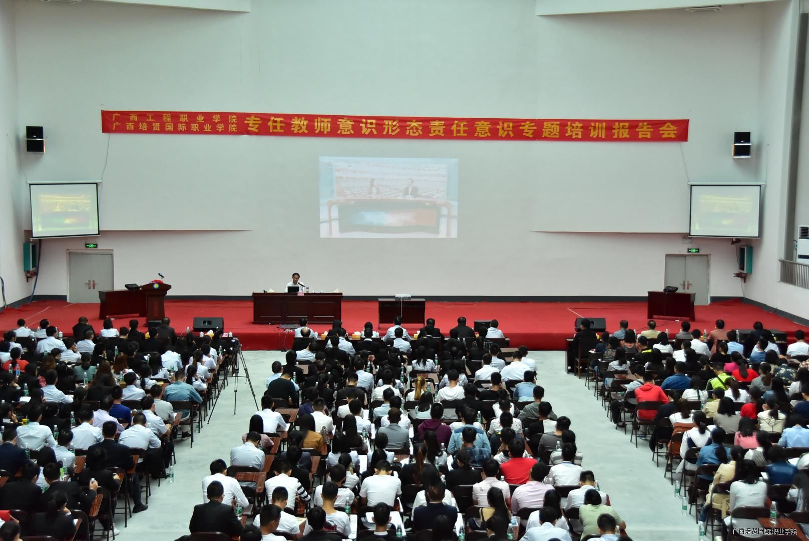 2017年10月20日下午,根据自治区教育厅统一部署,广西彩神国际职业学院与工程学院联合举办意识形态责任意识培训🏃🏻♂️➡️,由自治区教育厅委派专家黄健教授和徐魁峰教授做题为《专任教师意识形态责任意识》专题培训。学院副院长黄勇学、各二级学院全体教职工(含辅导员)以及学院各部门教职工参加培训。