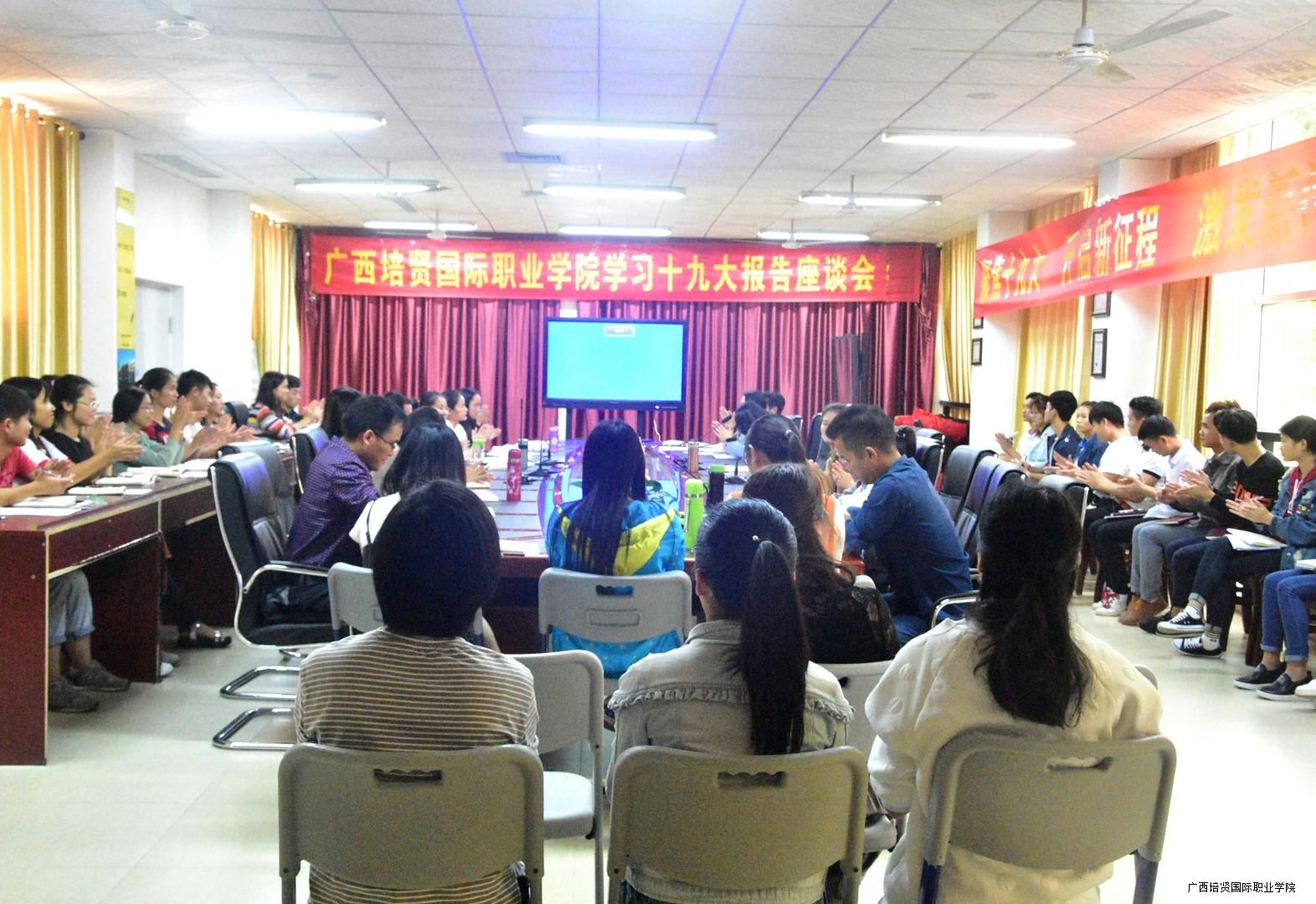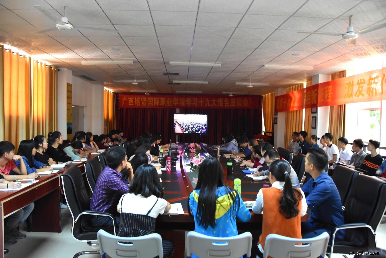 广西彩神国际职业学院学习十九大报告座谈会现场