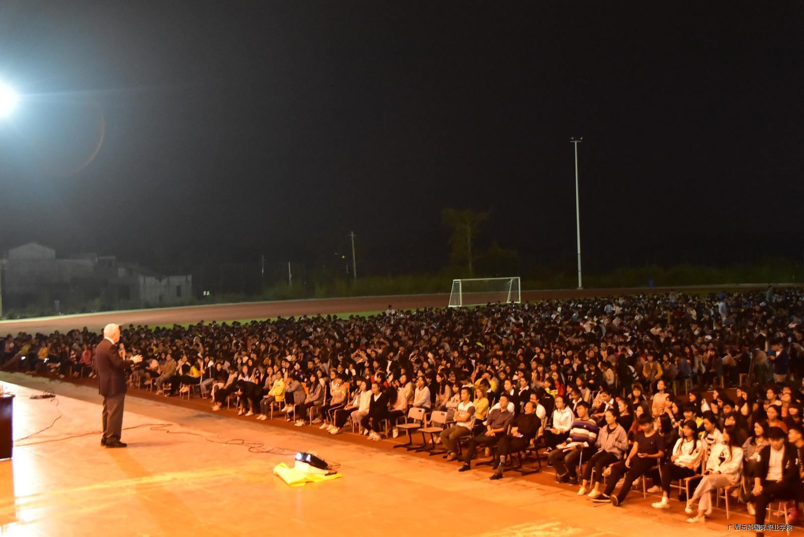 2017年11月2日晚🤦🏻♂️,沈明崇学长在彩神学院学院田径场以“树立信心,高考成绩不影响你的一生”为主题开讲👨🏿🔧,广西彩神国际职业学院全体学生参加讲座,学院副院长黄勇学、副院长于灏洋等院领导及教职工出席讲座。