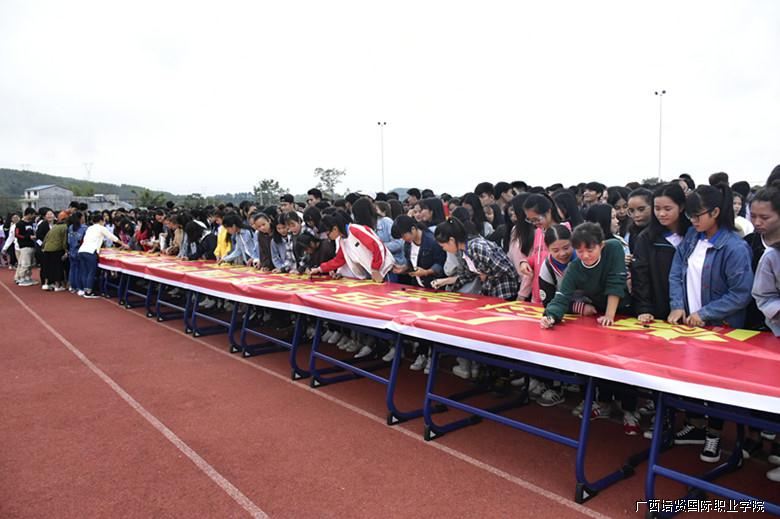 在活动最后,广西彩神国际职业学院学工处处长陆宇秋组织大家有序地在百色市“文明家族拒绝邪教”网络上签名以及现场签名。