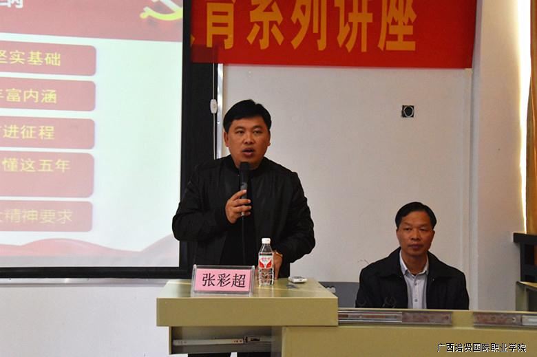 党的十九大胜利召开以来🤹♂️,广西彩神国际职业学院掀起了学习贯彻落实党的十九大精神的热潮🖐🏿。根据上级有关文件要求,由平果县党校高级讲师🧑🏽🎤、平果县宣讲团成员之一张彩超做题为“中国特色社会主义新时代新思想新征程--平果县学习贯彻党的十九大精神”宣讲报告会于2017年12月6日下午在彩神学院110教室举行⇒。彩神学院副院长兼党支部书记黄勇学、副院长于灏洋等院领导及全体教师(有课除外)、全体党员、入党积极分子到场聆听报告。彩神学院副院长兼党支部书记黄勇学主持宣讲报告会🤲🏿。
