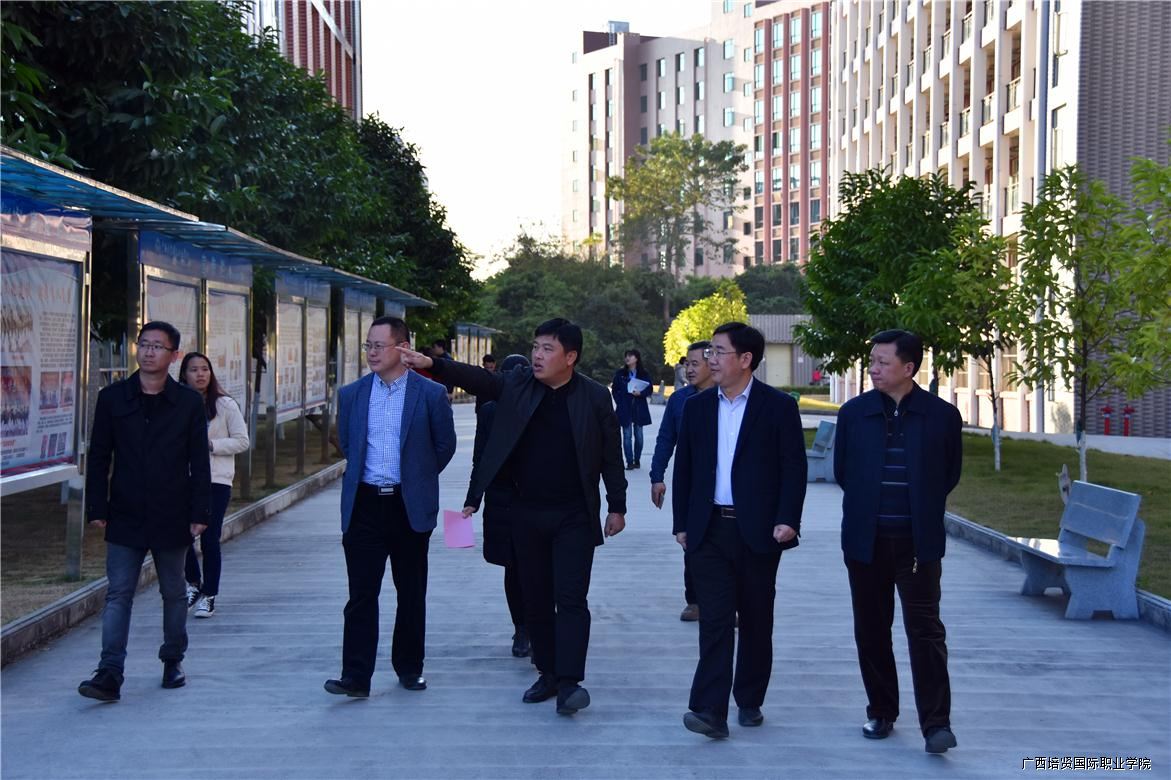 自治区考评组、百色市及县政府领导们在我院副院长黄勇学的带领下参观了我院教学楼⏸,副院长黄勇学向自治区考评组一行人介绍我院办学以来的基本情况,学院历史,教学特色,以及学院建筑方面的几个重要项目🧖🏻♀️:将于明年四月投入使用的“崔琦”教学大楼、国际交流中心和即将建设的7、8号宿舍楼、以及即将开放使用的四星级实训酒店。在参观途中🌺,自治区考评组领导们不时地询问我院在校学生的住宿条件🪥、学费收费🆚、学院对学生的教学模式等各方面的情况✌🏻,副院长黄勇学一一做出解答,并详细的介绍了我院“专业+英语”、国际化ABE课程、小班教学🩳👨🏼🔧、外教互动课堂的教学模式。