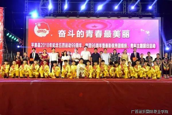 为纪念“五四”运动99周年👨🍼,弘扬“爱国🚙、进步、民族⏸、科学”的五四精神,中共平果县委宣传部、共青团平果县委员会于5月4日(星期五)晚在我院隆重举办主题为“奋斗的青春最美丽”纪念“五四“运动99周年暨优秀青年、团组织表彰晚会。