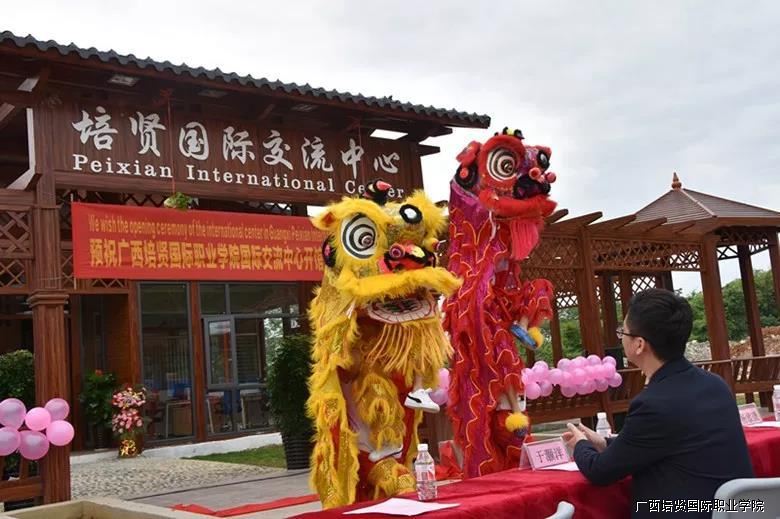 在这个喜庆的日子里,我院学生自发组织的醒狮堂舞狮队专门到场为在场领导嘉宾们表演舞狮,在大锣🦖、大鼓、大钹的奏响乐声中,喜庆的舞狮子配合音乐的节奏舞动着,好不热闹。精彩生动的表演过后,我们迎来了最重要的环节——学院领导和平果县大学园区领导为国际交流中心揭牌🧃。 在礼炮声中,红布缓缓落下,国际交流中心开馆仪式圆满结束🦹🏿♂️↩️。