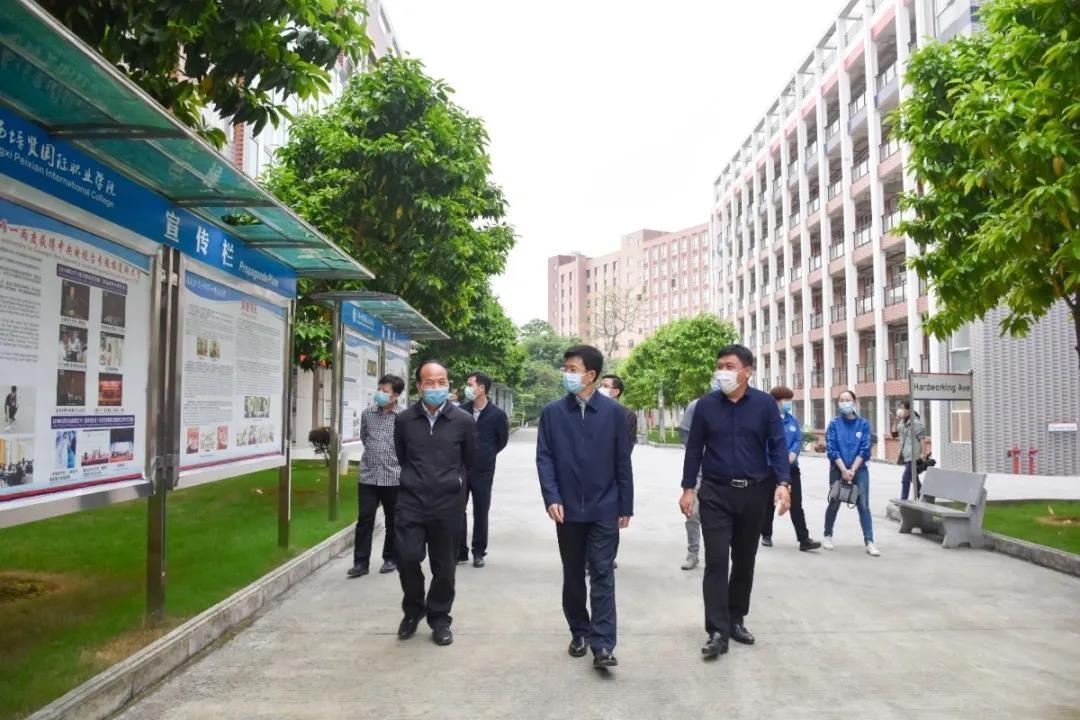 2020年4月8日,百色市委常委、统战部部长罗试坚等一行莅临我校检查指导疫情防控和开学准备工作。
