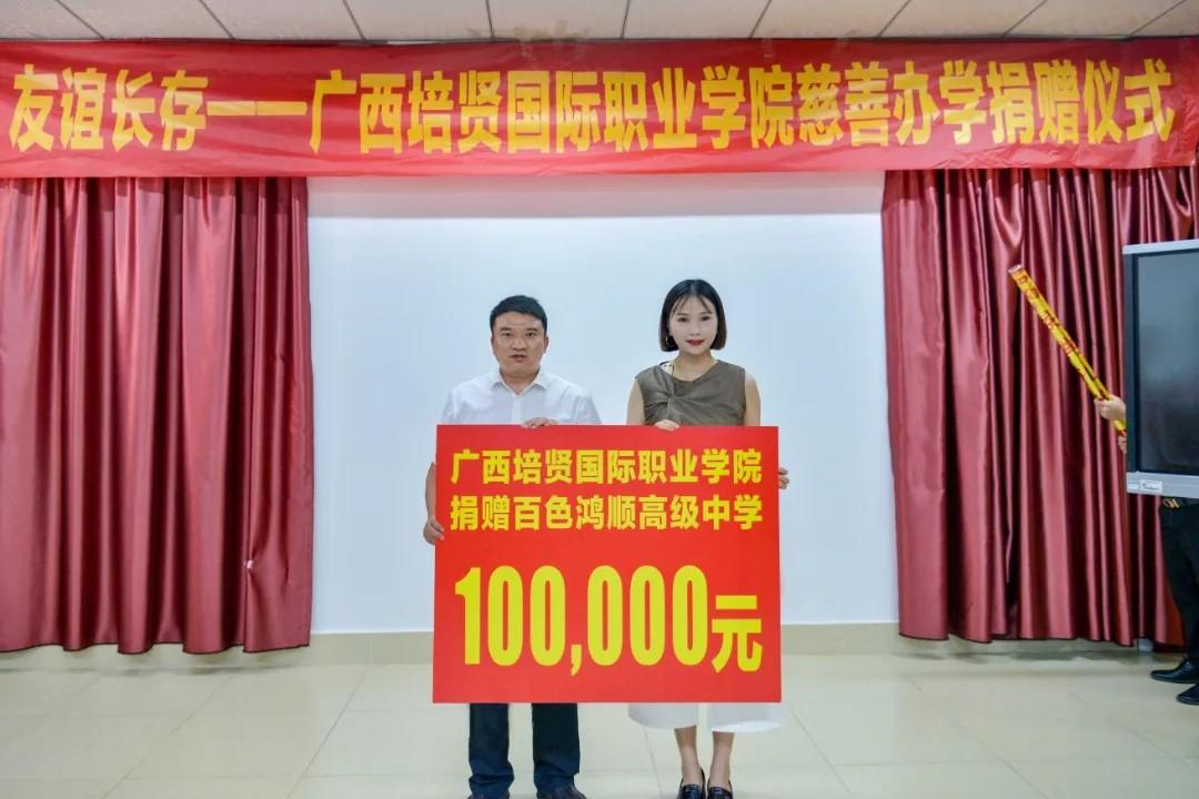 2023年6月29日,我校举行校校合作、友谊长存——广西彩神国际职业学院慈善办学捐赠仪式,向鸿顺高中捐赠10万元。