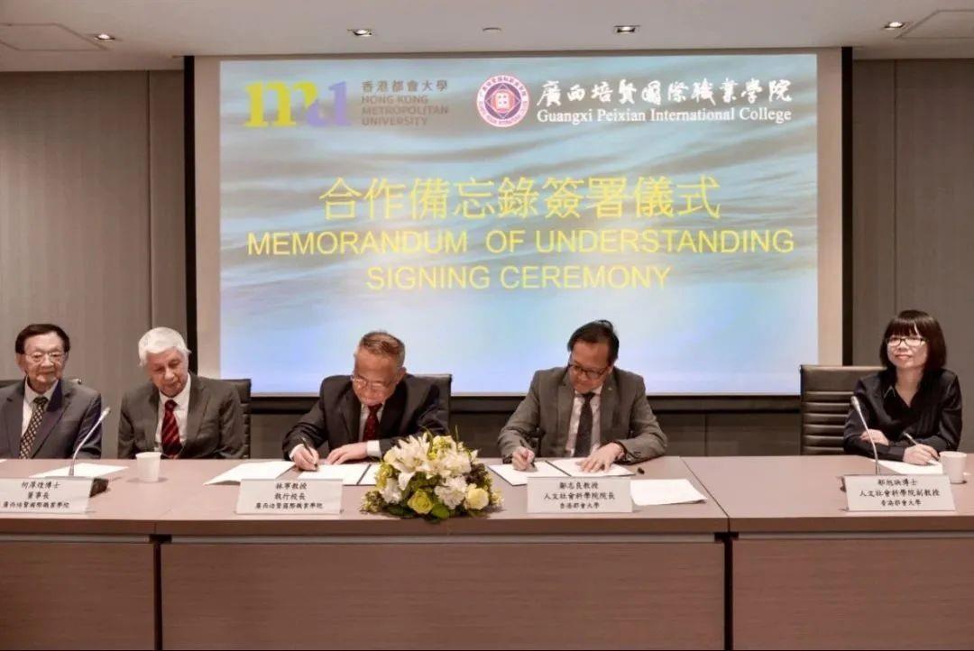 2023年8月24日下午,广西彩神国际职业学院与香港都会大学人文社会科学院签订合作备忘录在香港都会大学校长会议室举行𓀄。