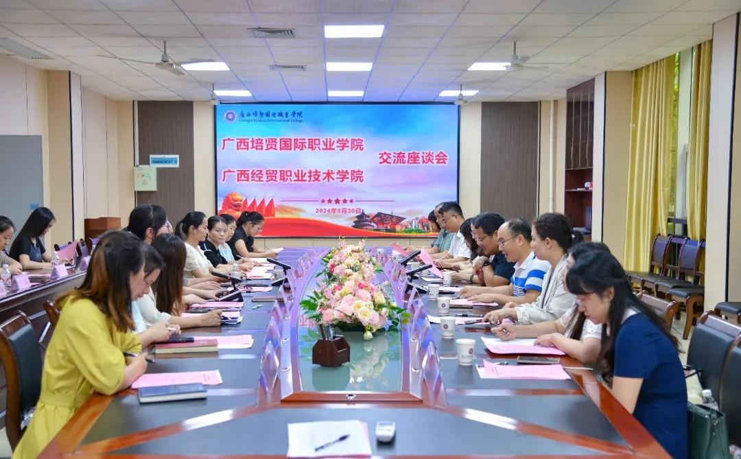 2024年5月30日下午,广西经贸职业技术学院副校长程波一行到我校开展帮扶工作,精心组织优秀专家及骨干教师对我校规范办学、质量诊改、合格评估等方面工作作进一步指导和探讨。