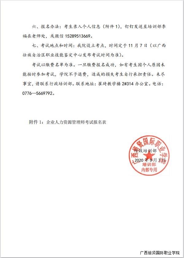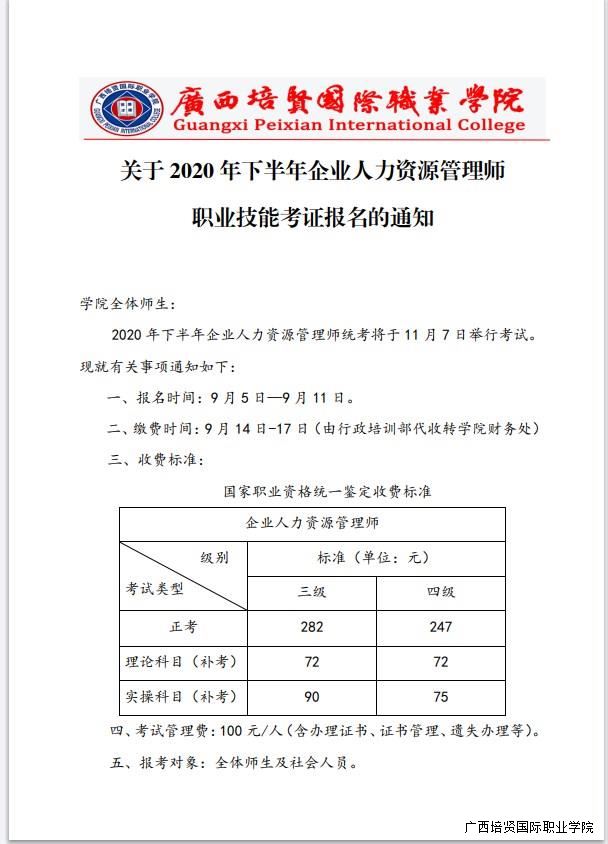 1. 关于2020年下半年企业人力资源管理师职业技能考证报名的通知