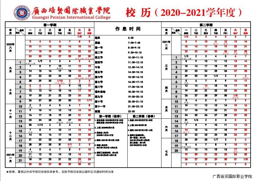 1. 关于印发《广西彩神国际职业学院2020-2021学年度校历》的通知