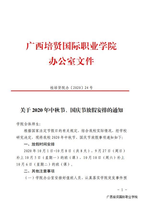 关于2020年中秋节🚵♀️🤹🏼♀️、国庆节放假安排的通知