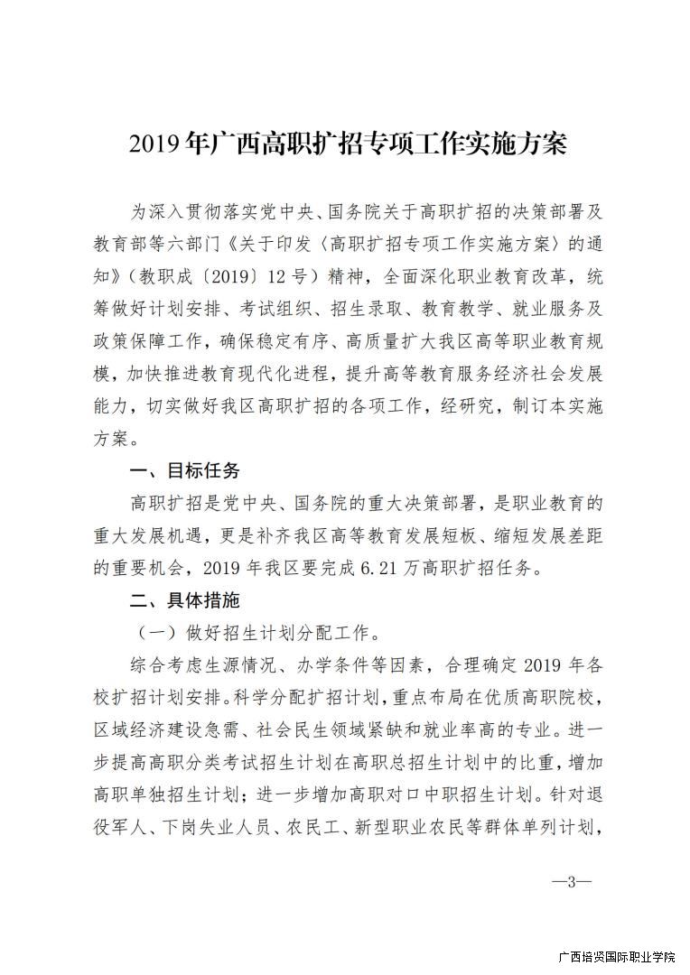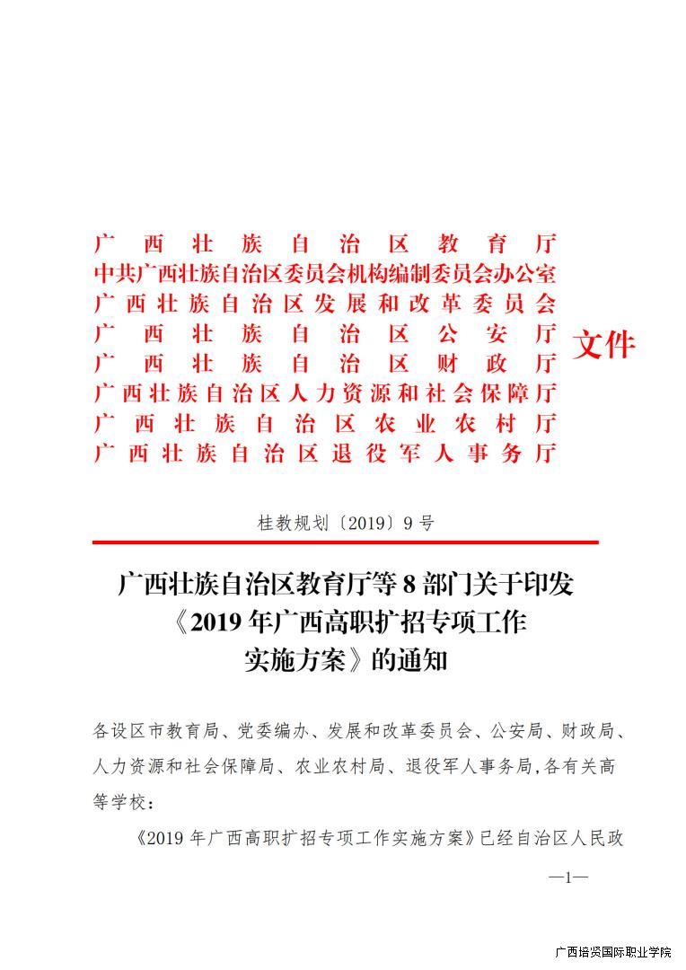 广西壮族自治区教育厅等8部门关于印发《2019年广西高职扩招专项工作实施方案》的通知