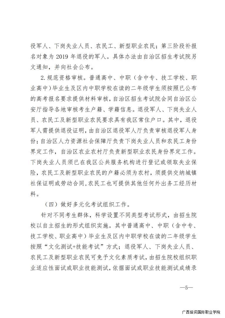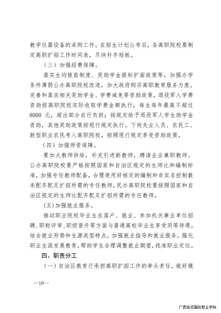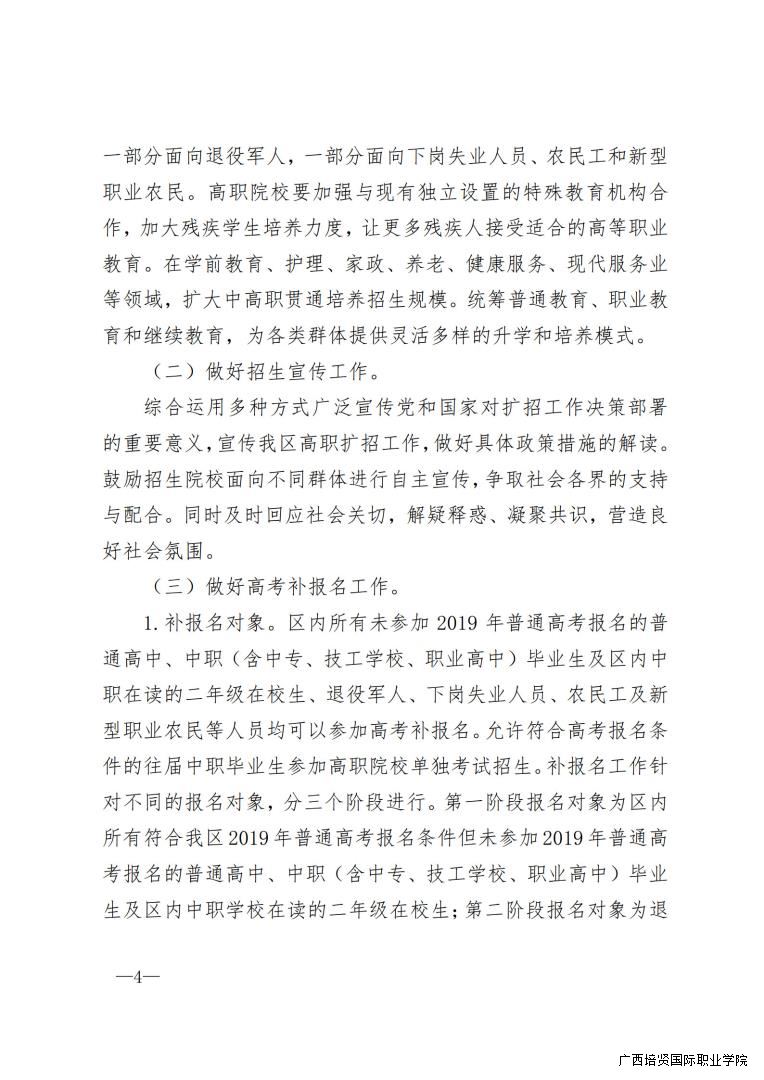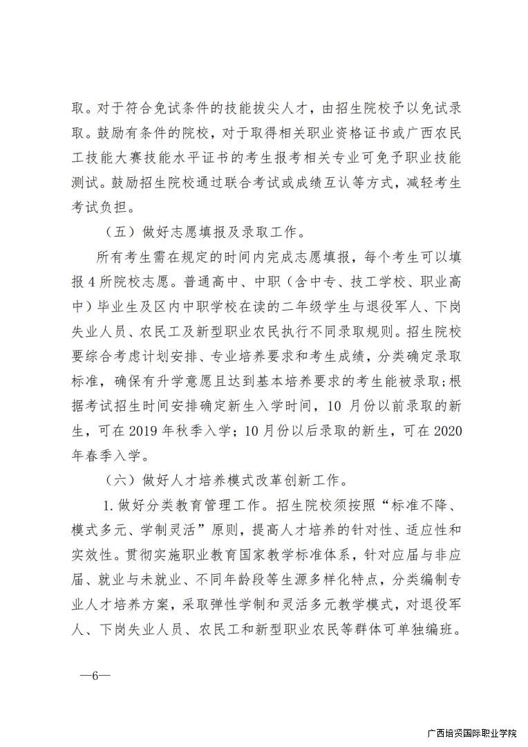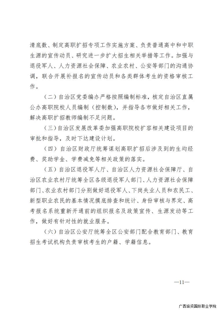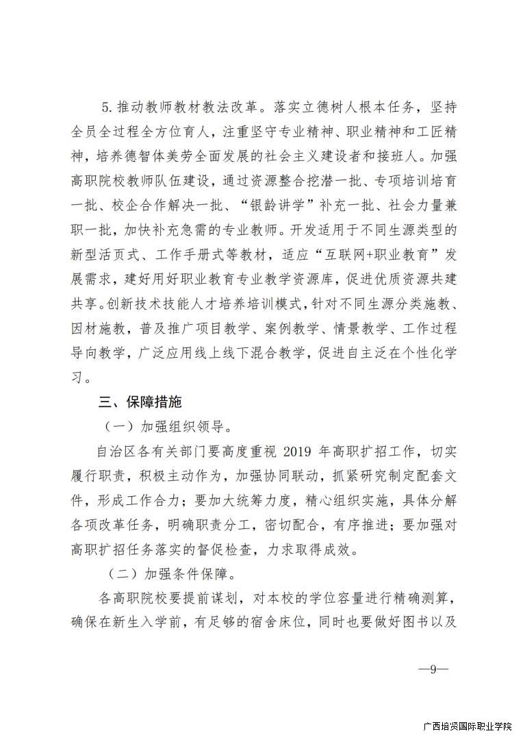 广西壮族自治区教育厅等8部门关于印发《2019年广西高职扩招第二阶段工作实施方案》的通知
