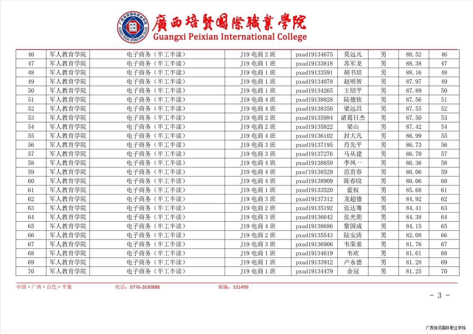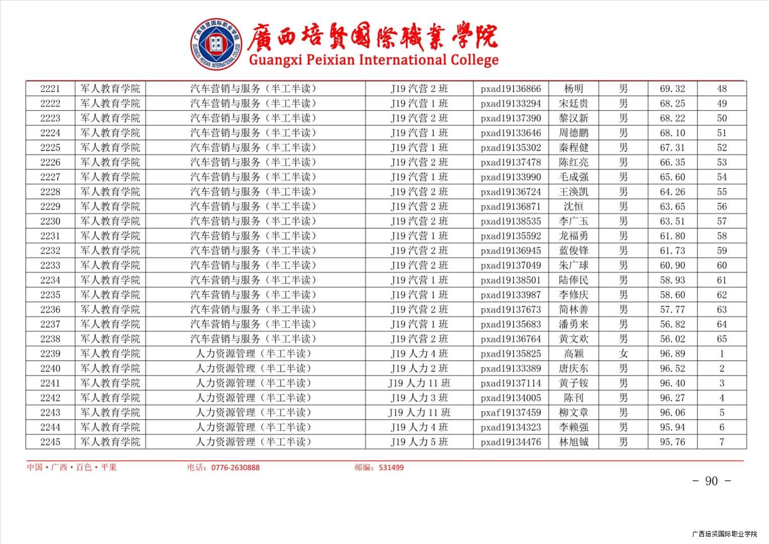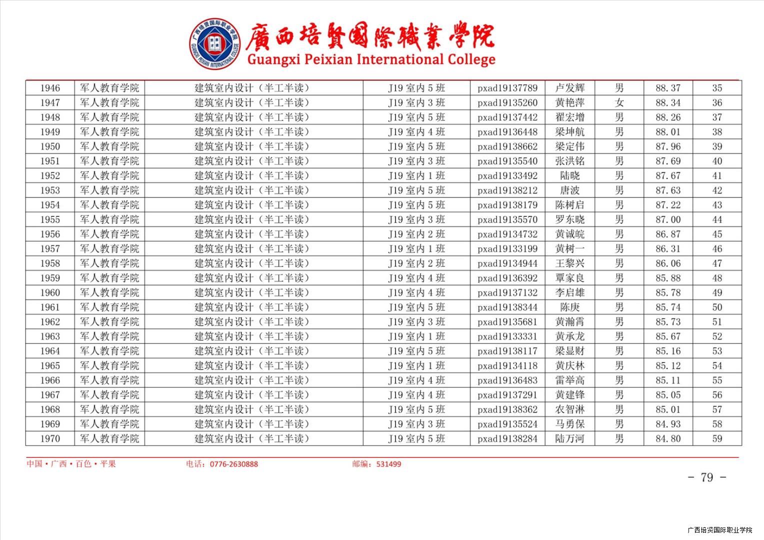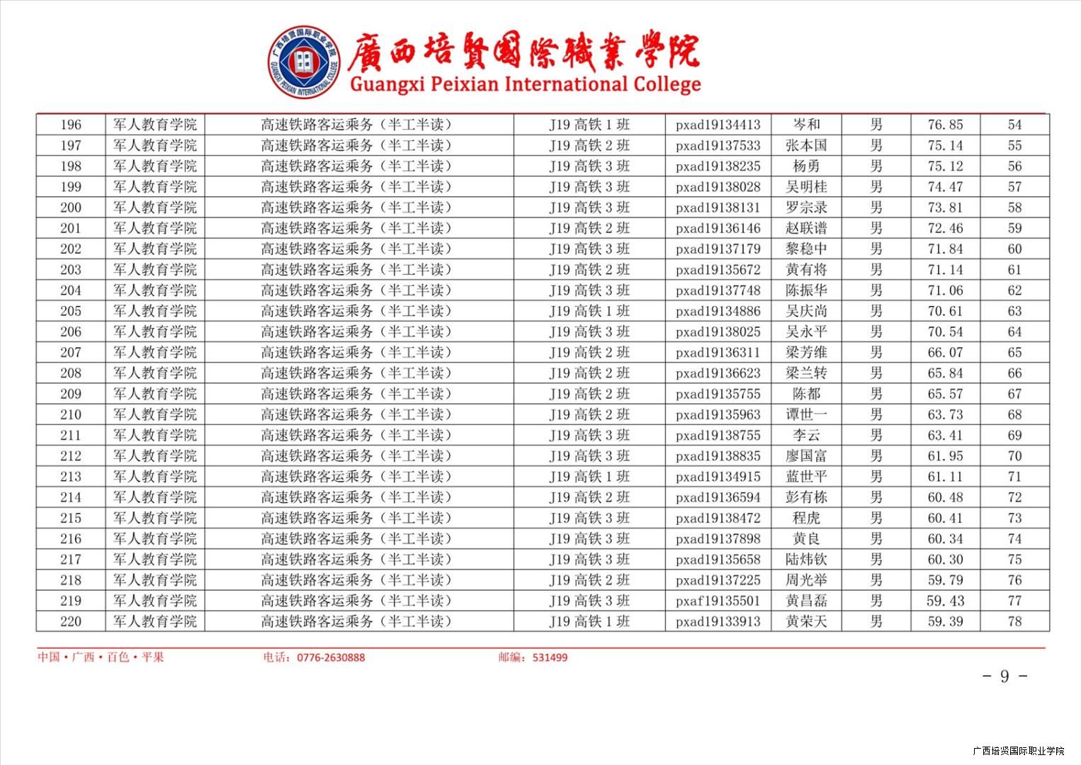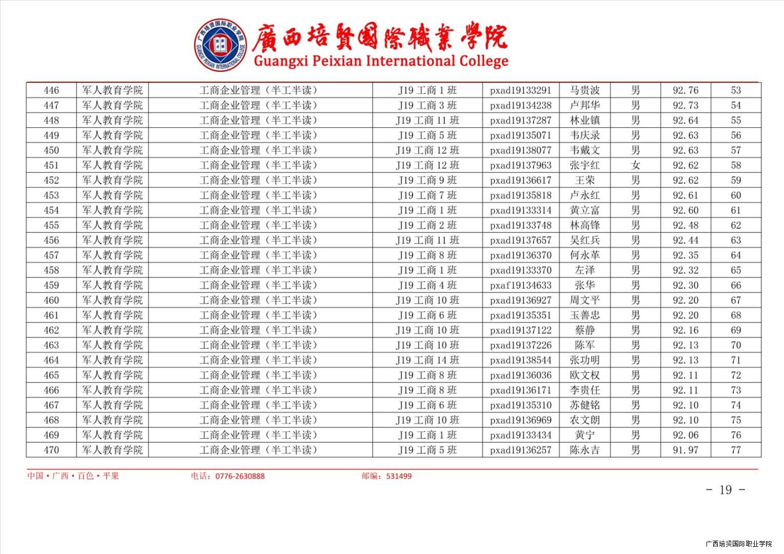 军人教育学院关于 2019 级毕业生课程 学分转换成功学生名单的公示