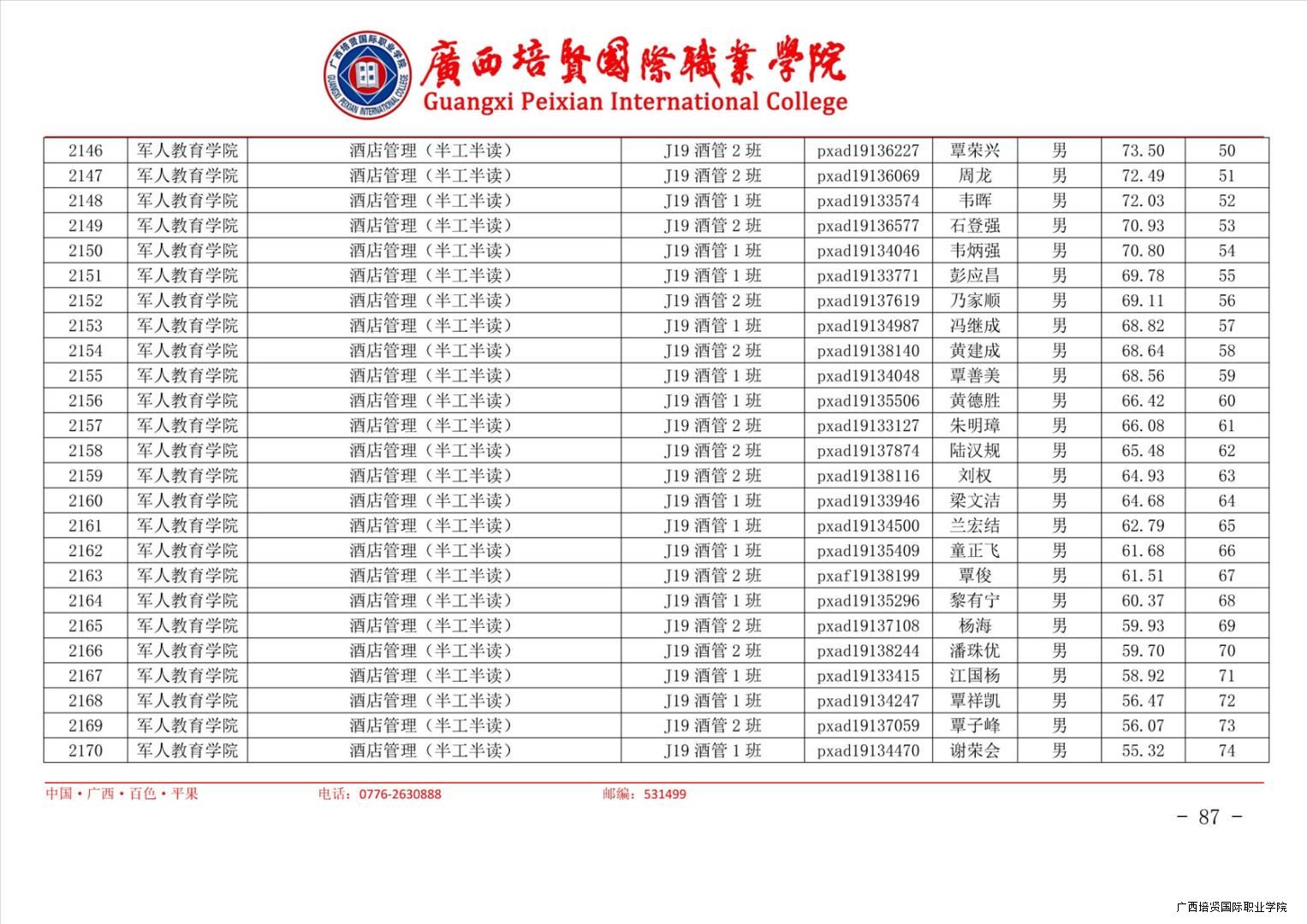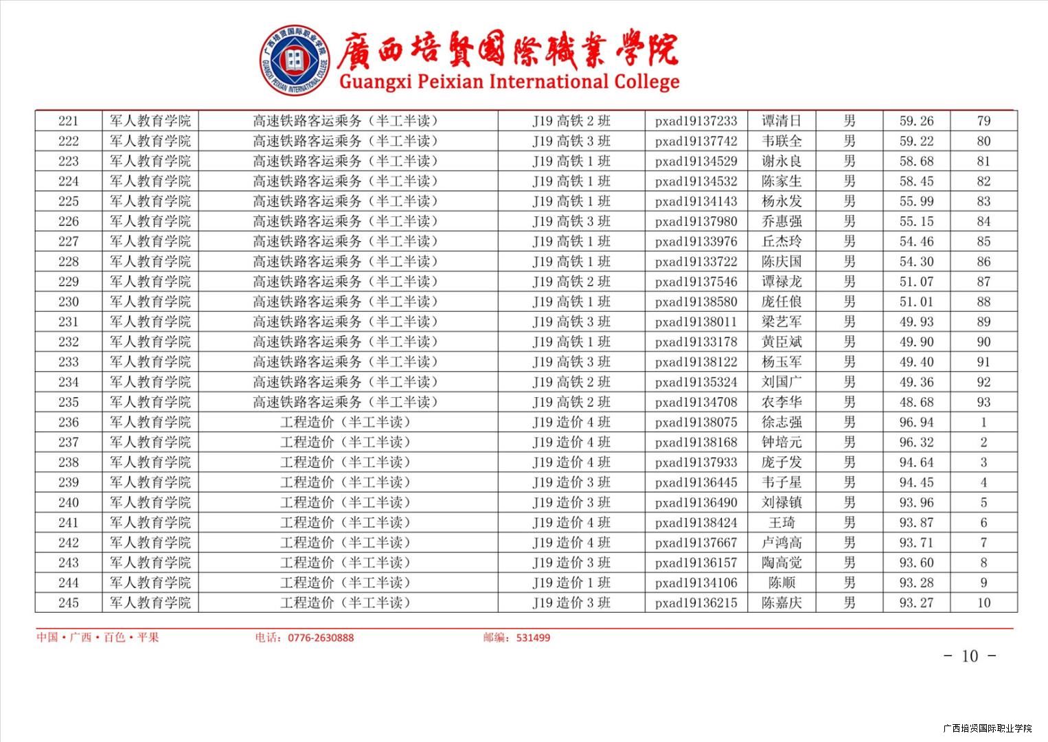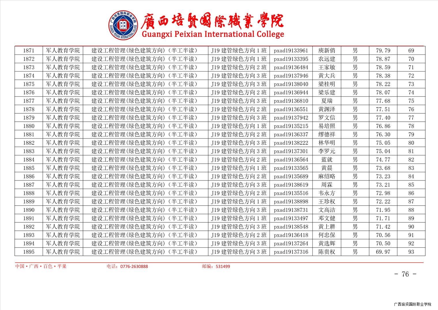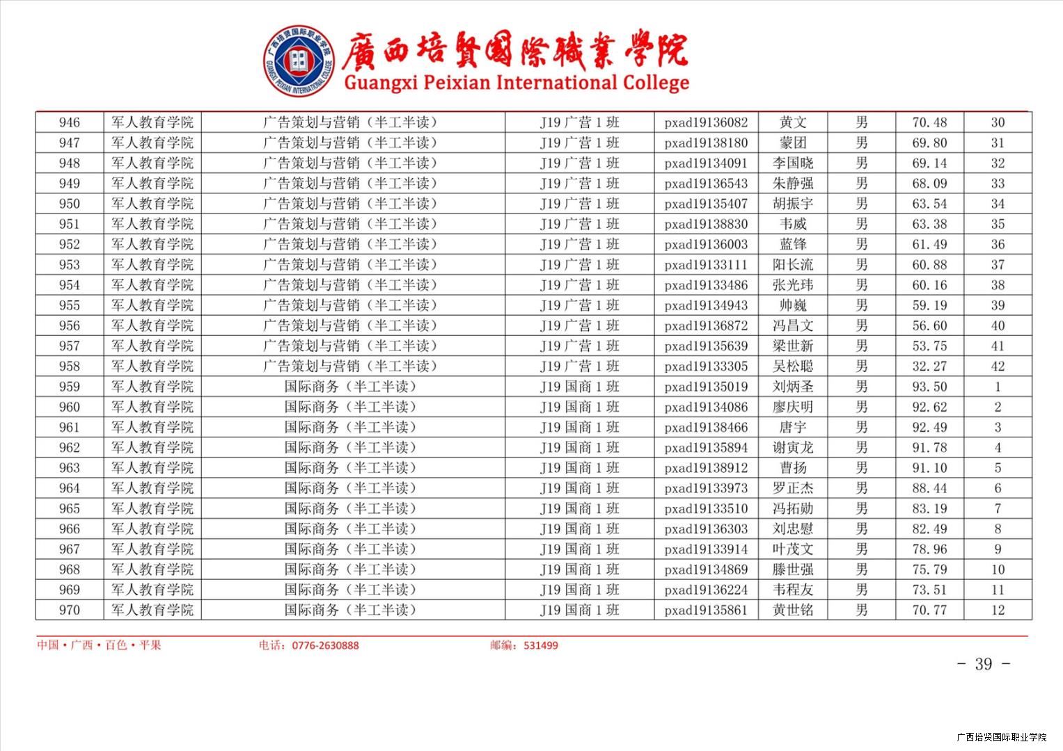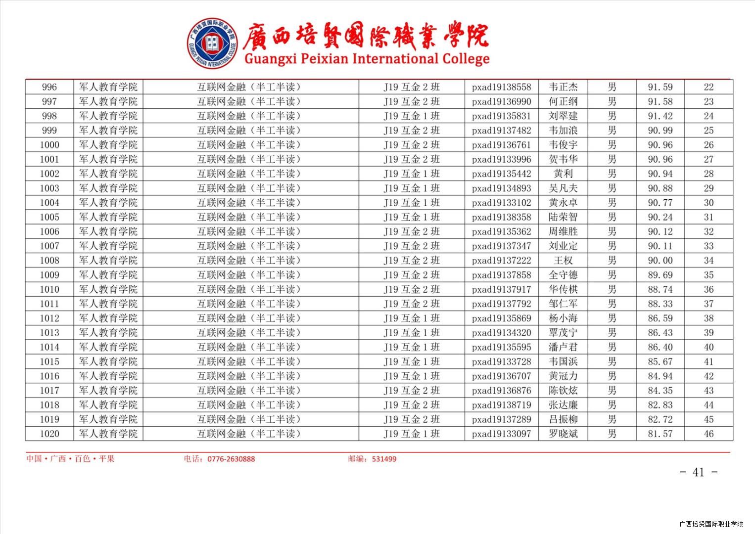 军人教育学院关于 2019 级毕业生课程 学分转换成功学生名单的公示