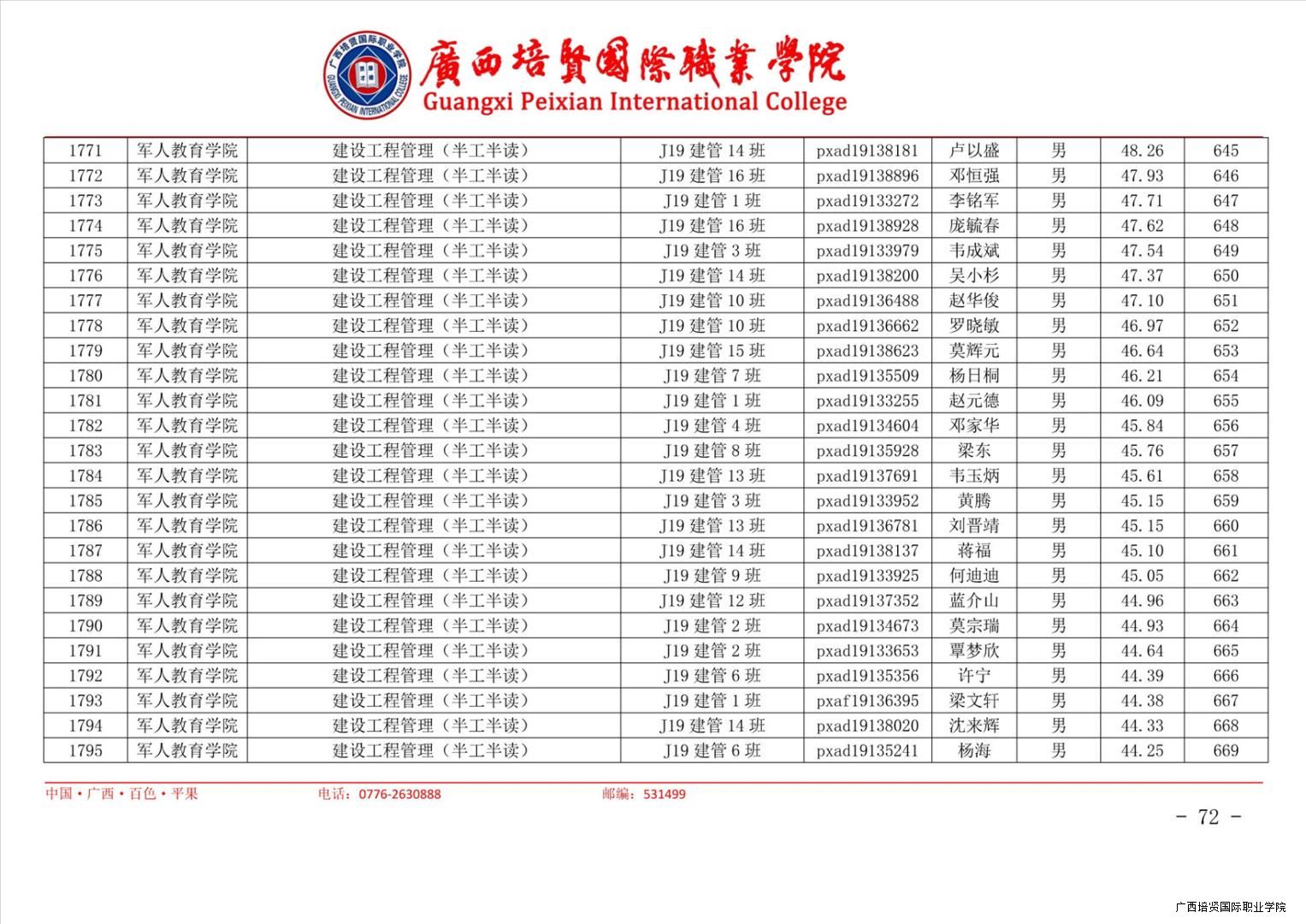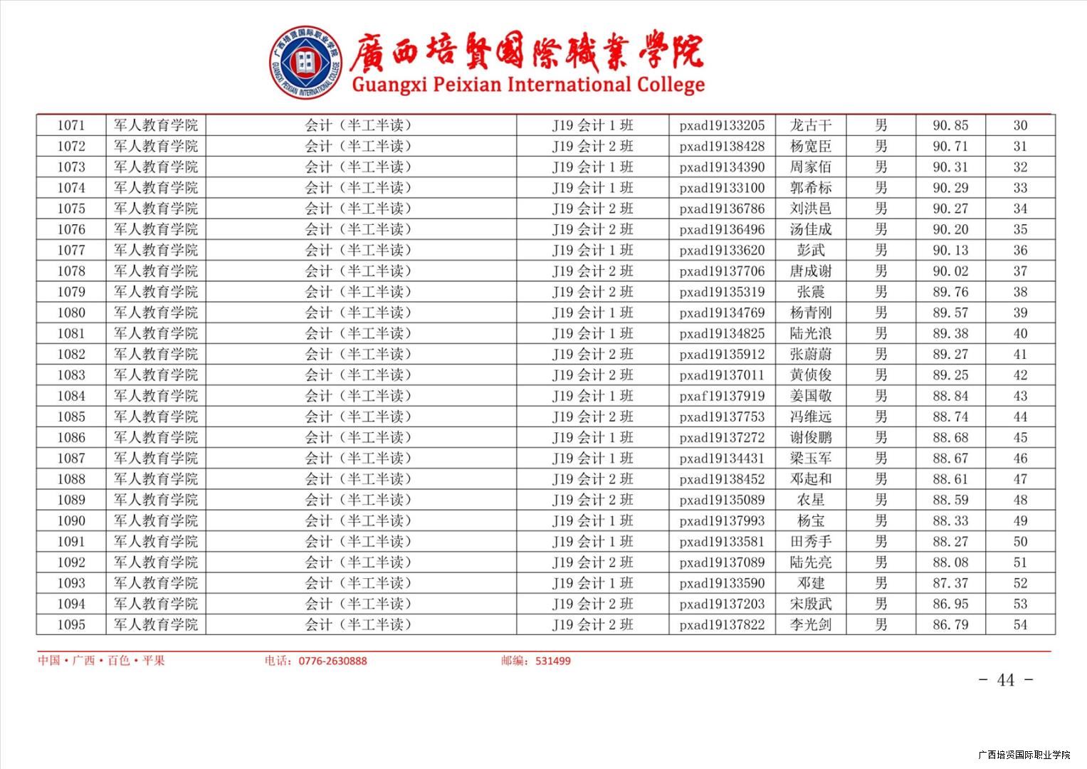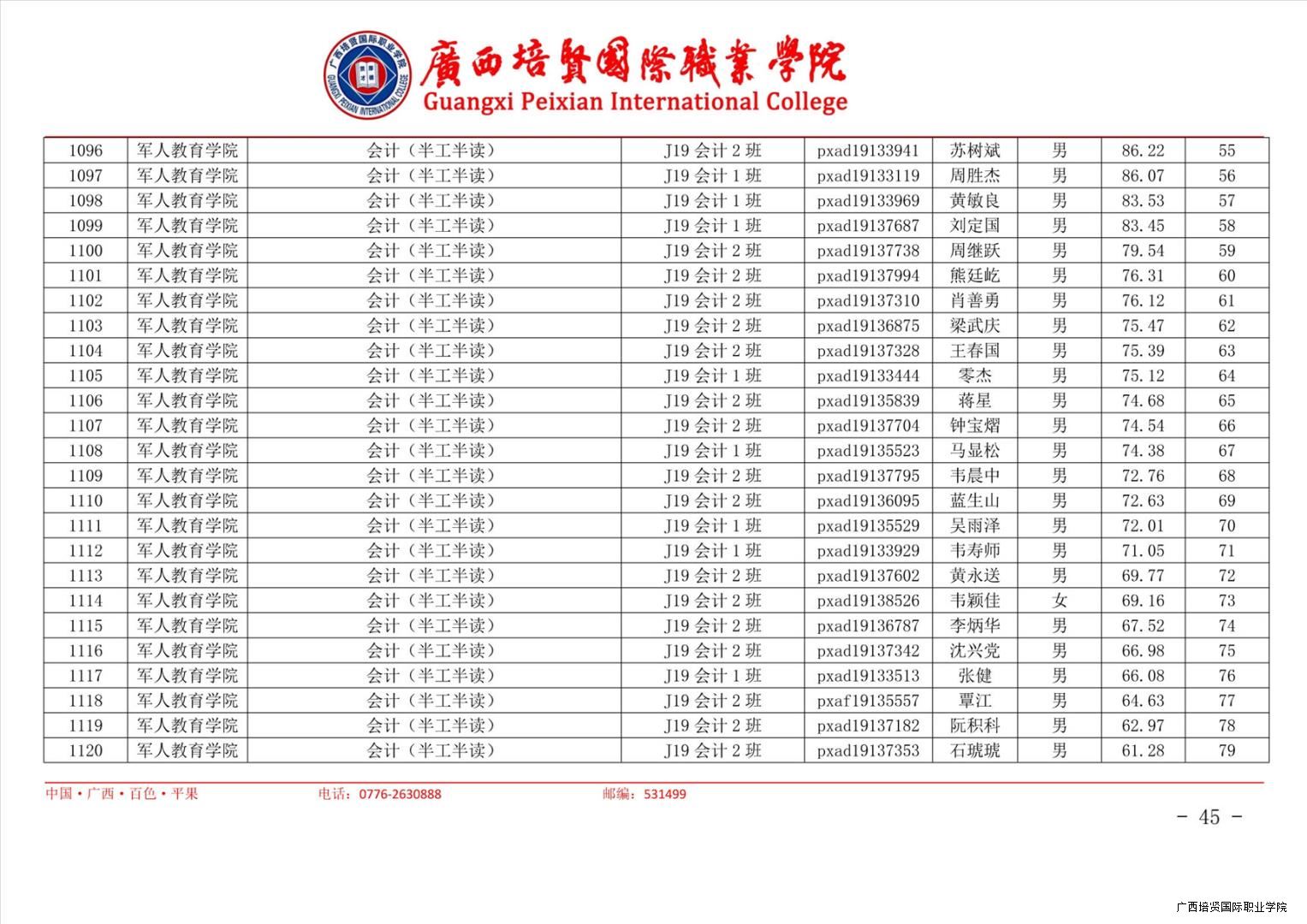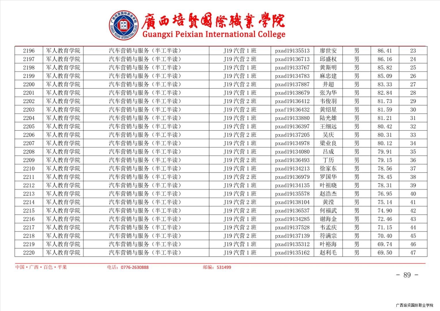 军人教育学院关于 2019 级毕业生课程 学分转换成功学生名单的公示