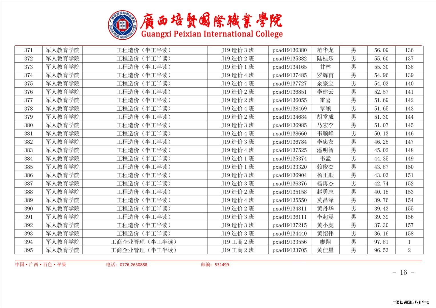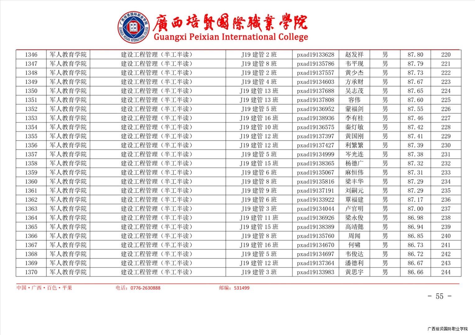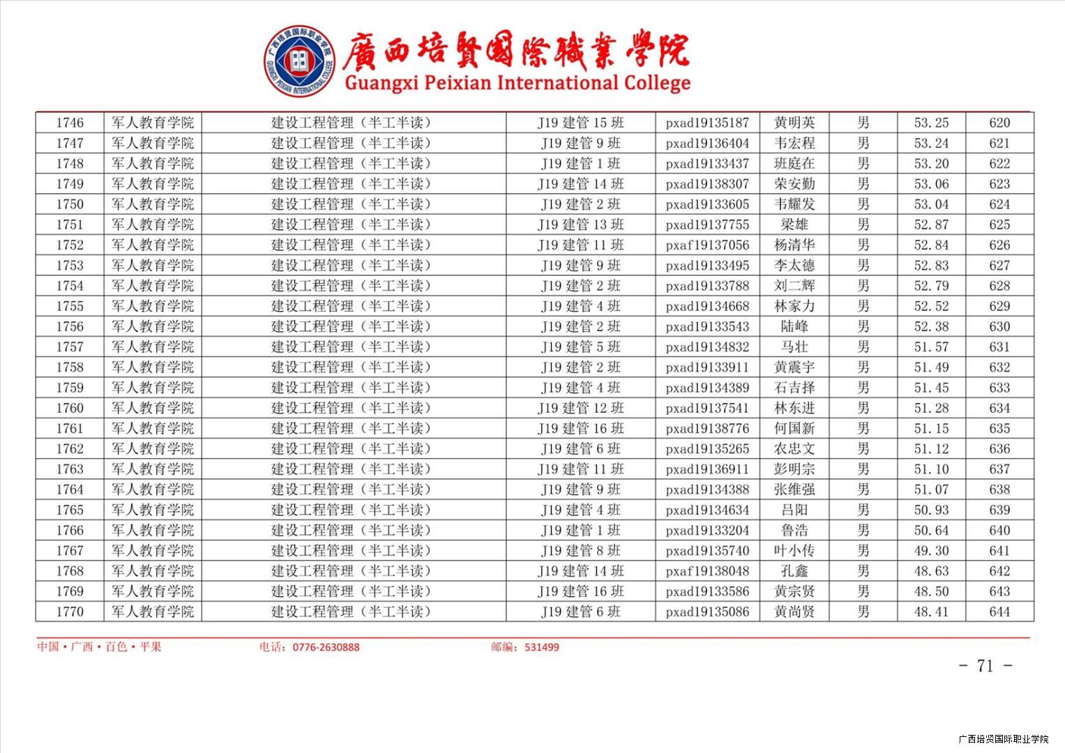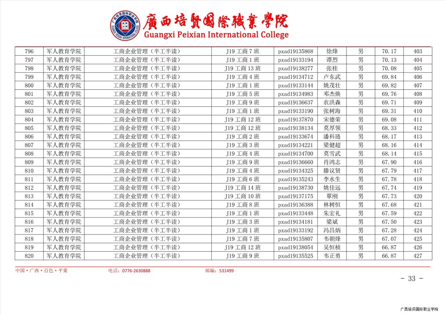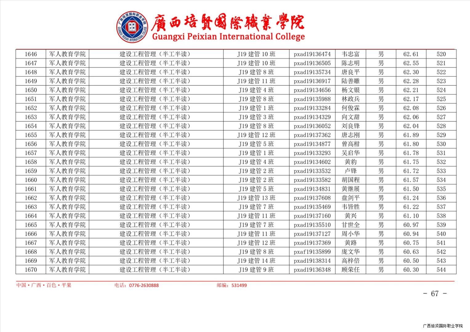 军人教育学院关于 2019 级毕业生课程 学分转换成功学生名单的公示