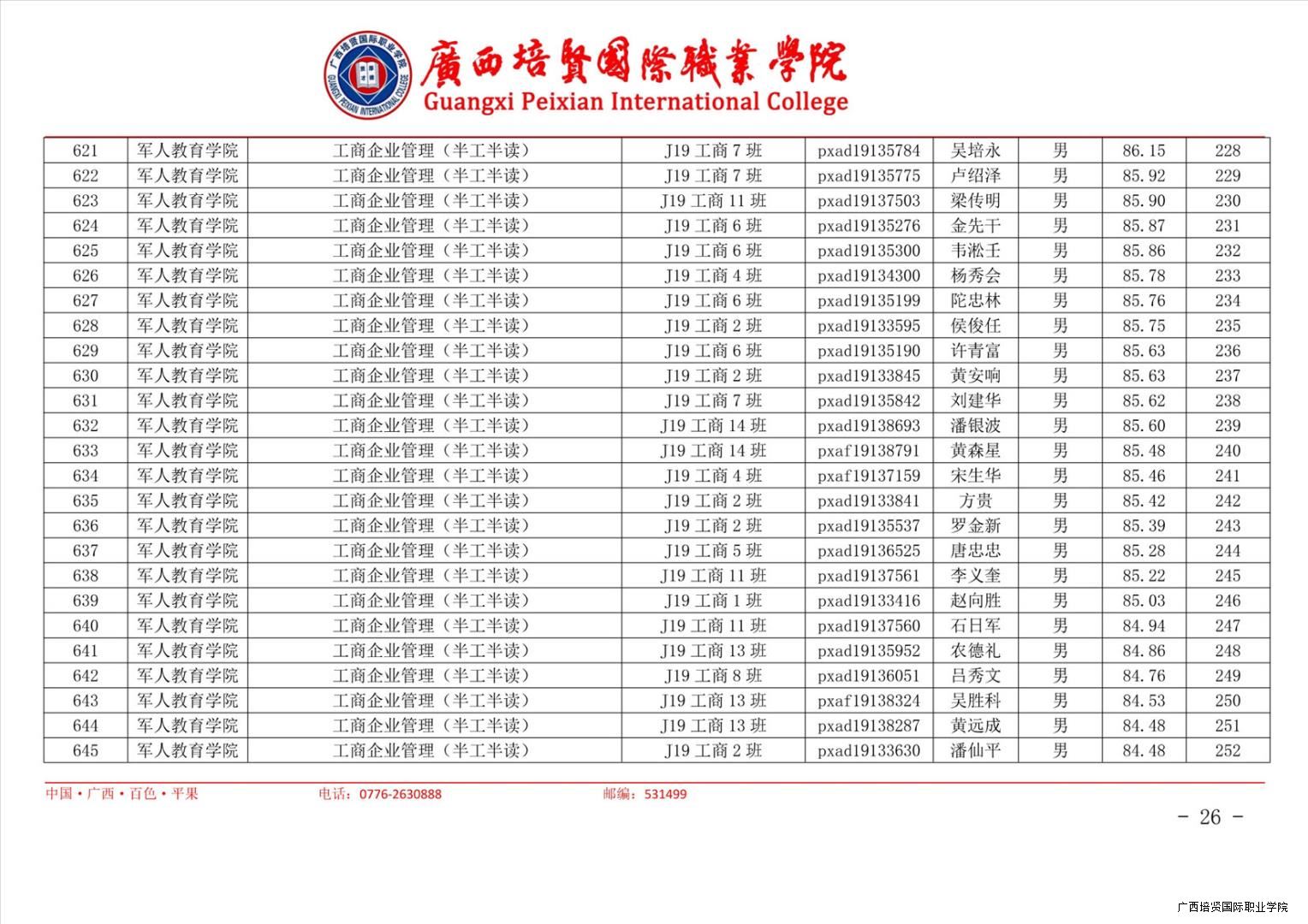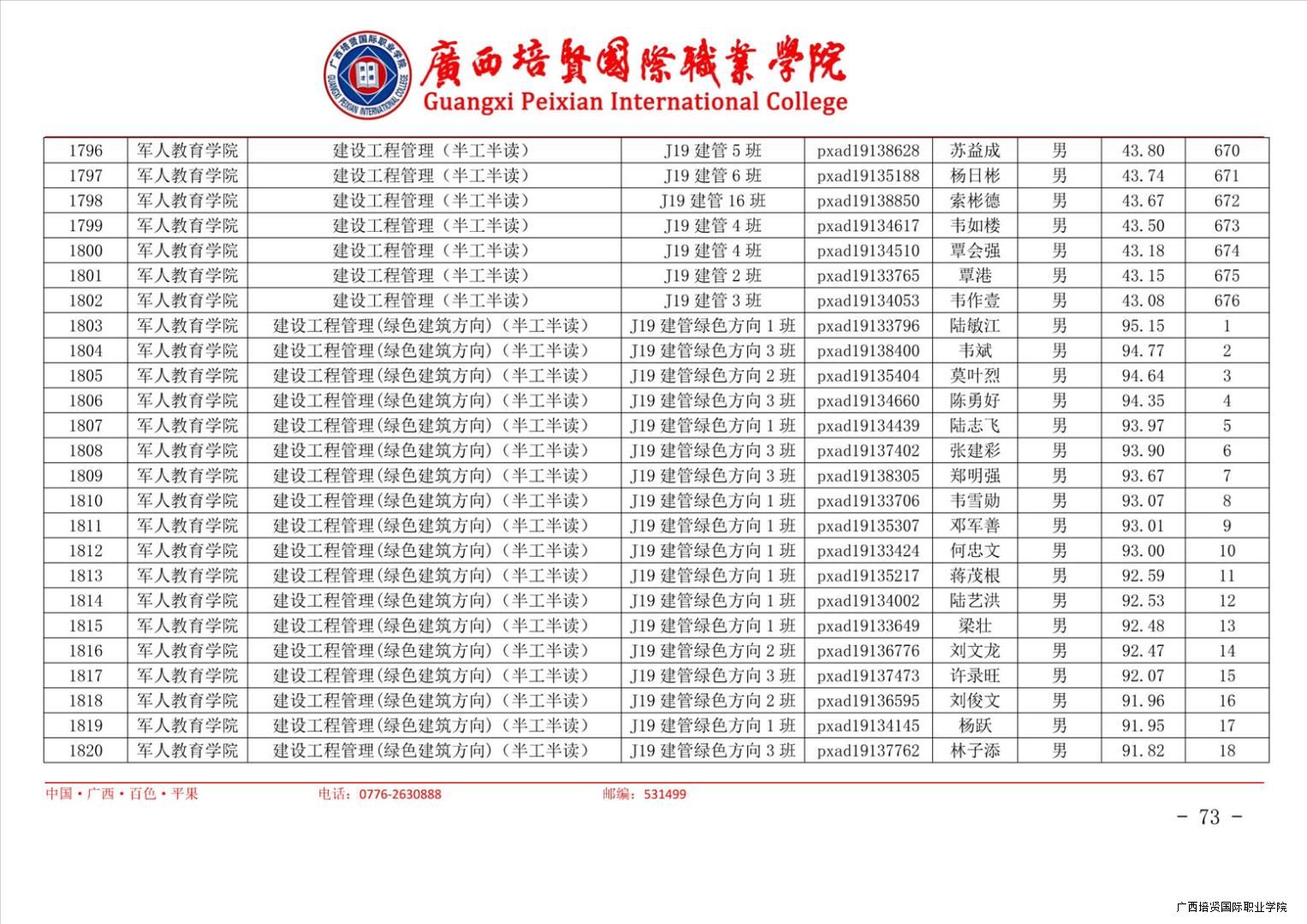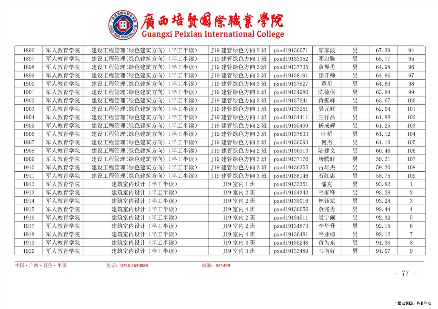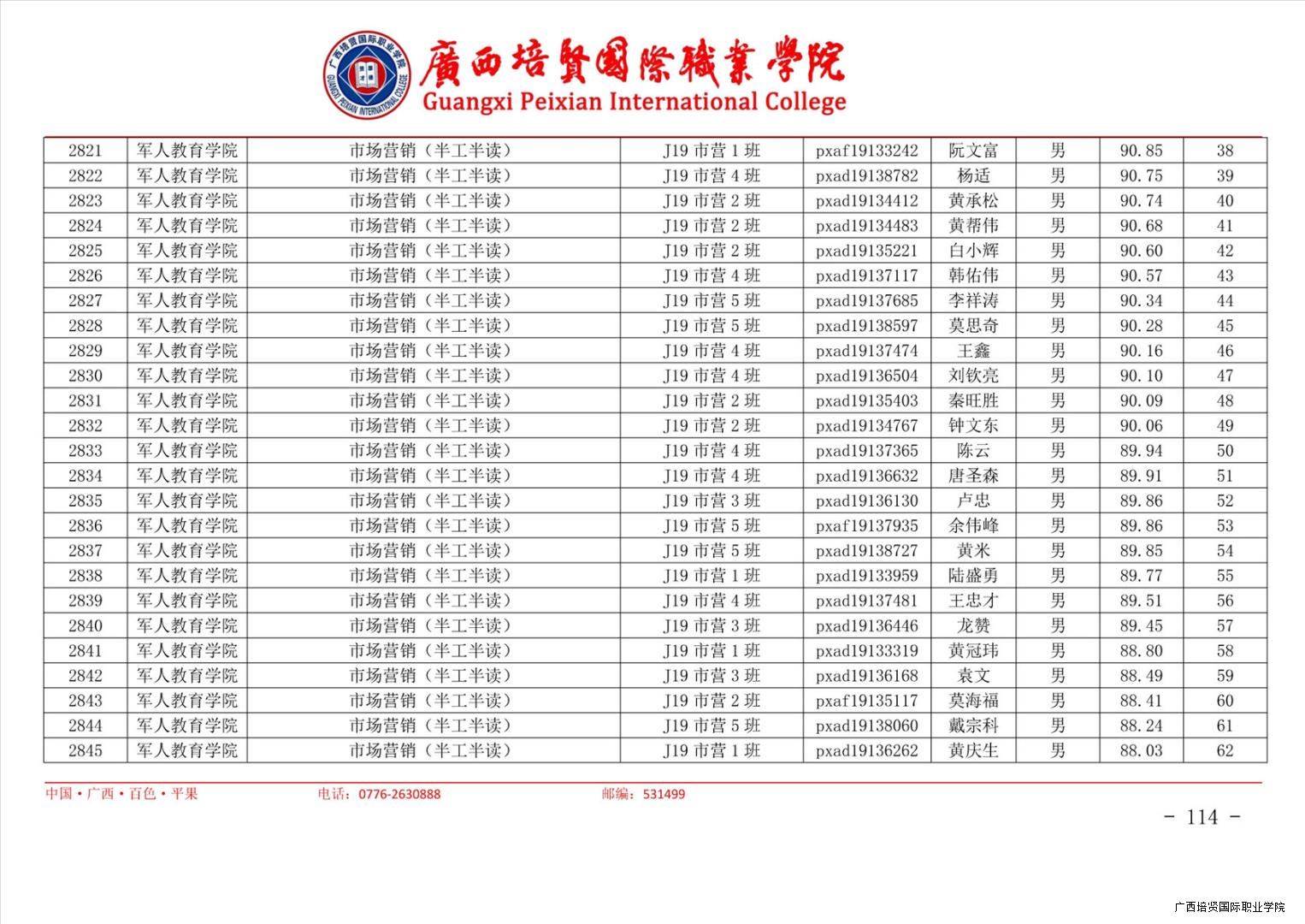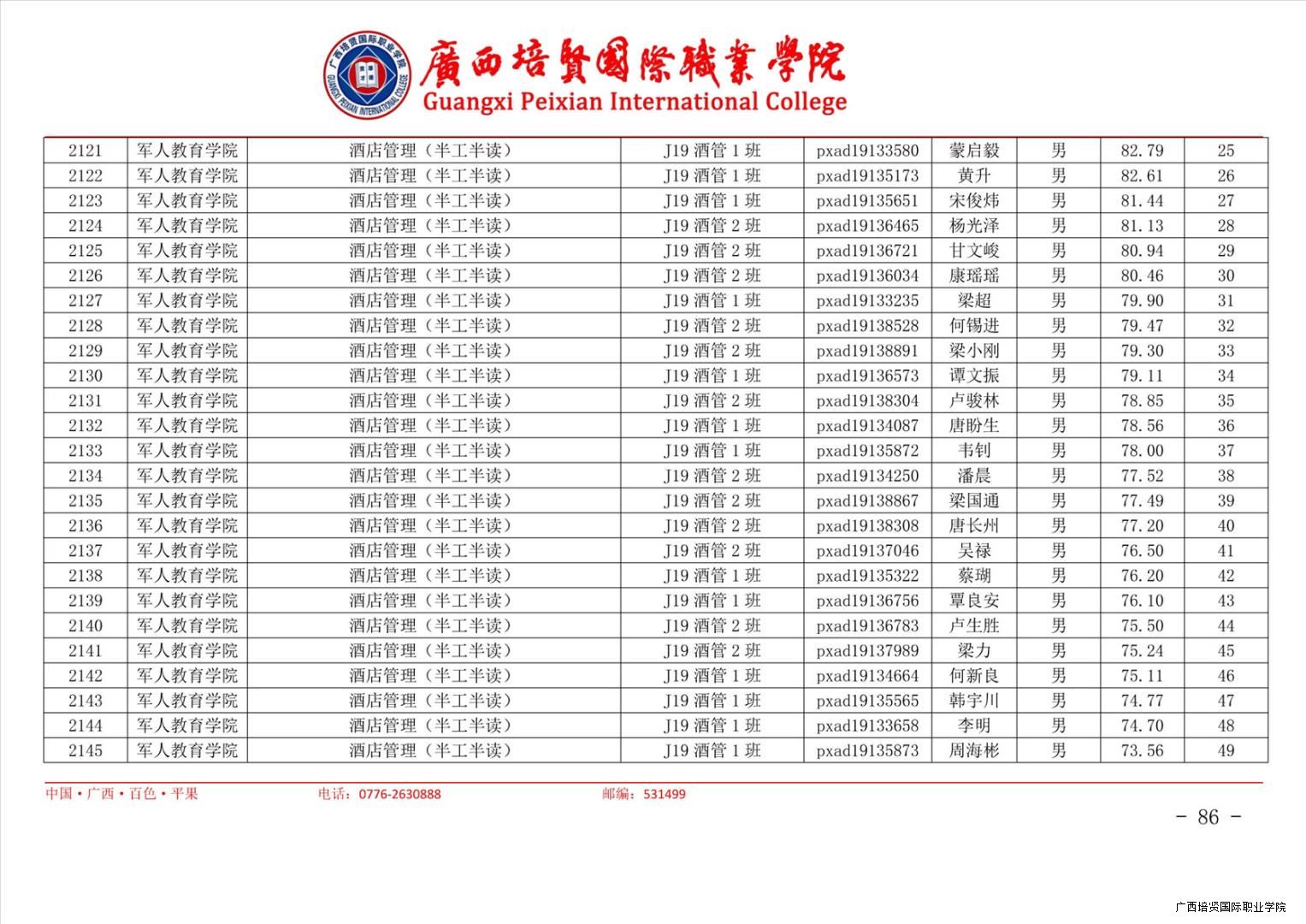 军人教育学院关于 2019 级毕业生课程 学分转换成功学生名单的公示