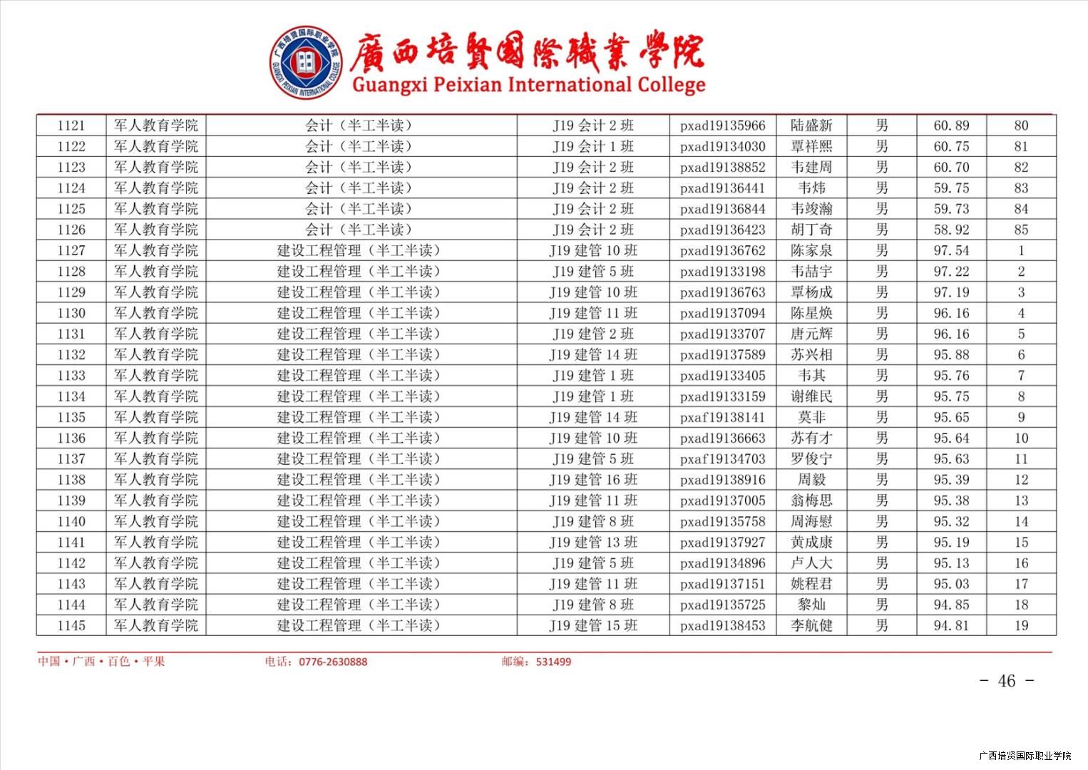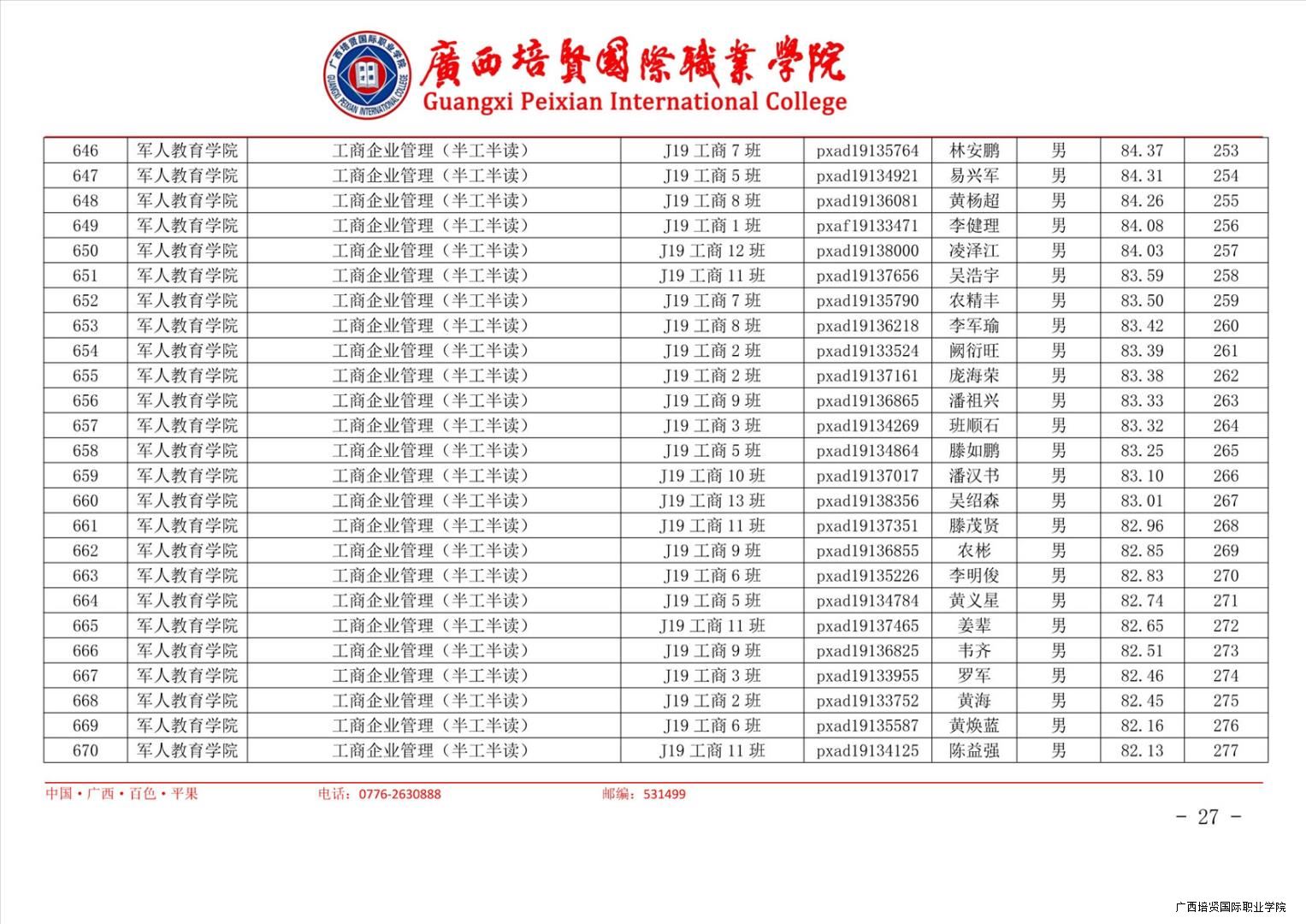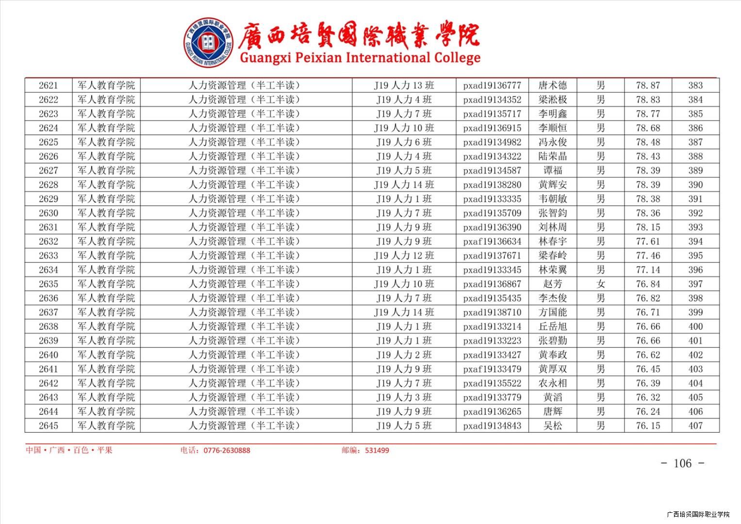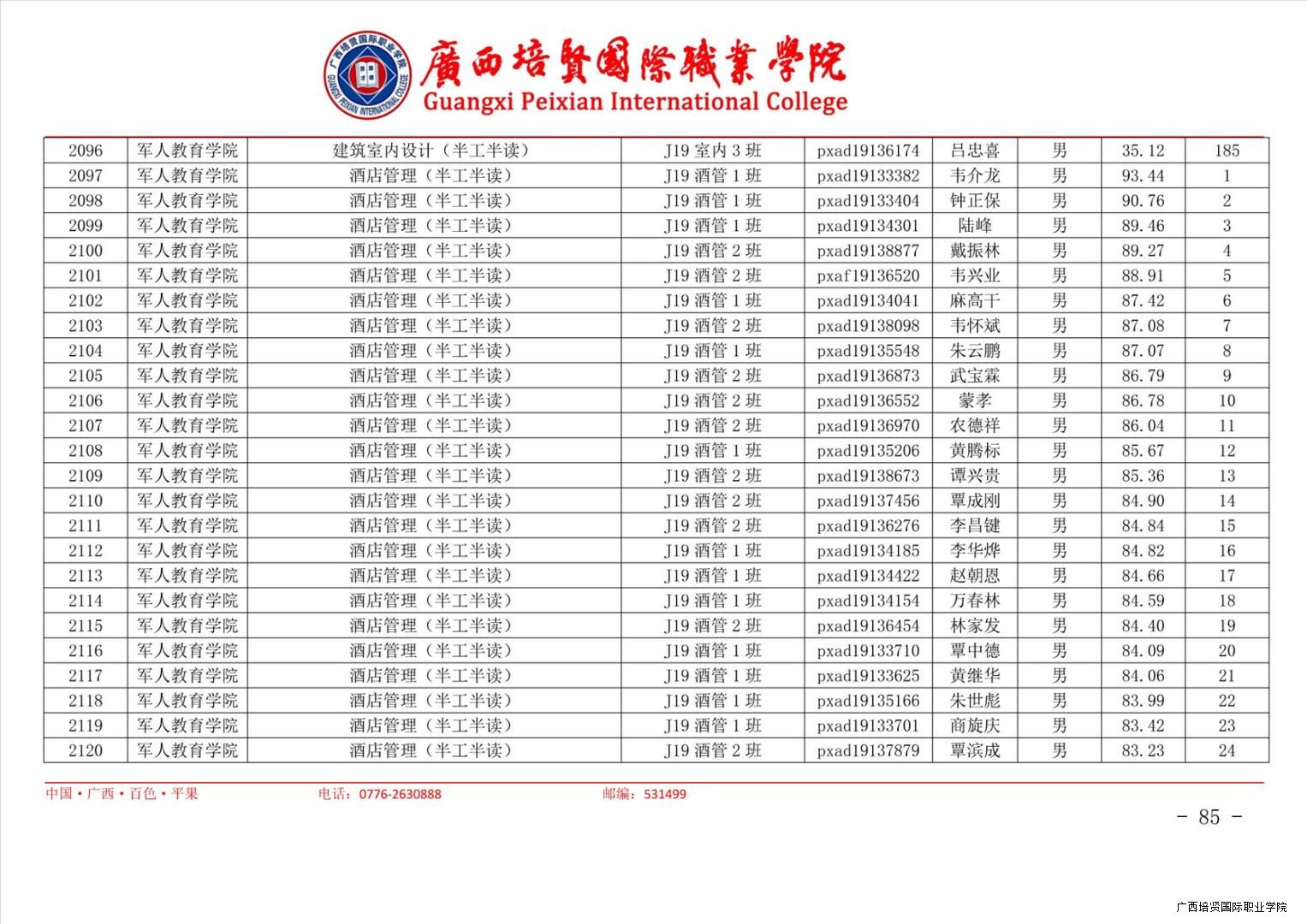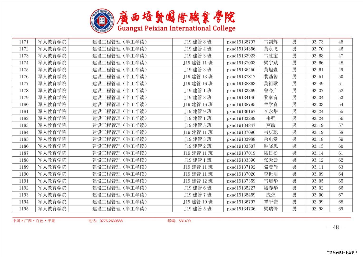 军人教育学院关于 2019 级毕业生课程 学分转换成功学生名单的公示