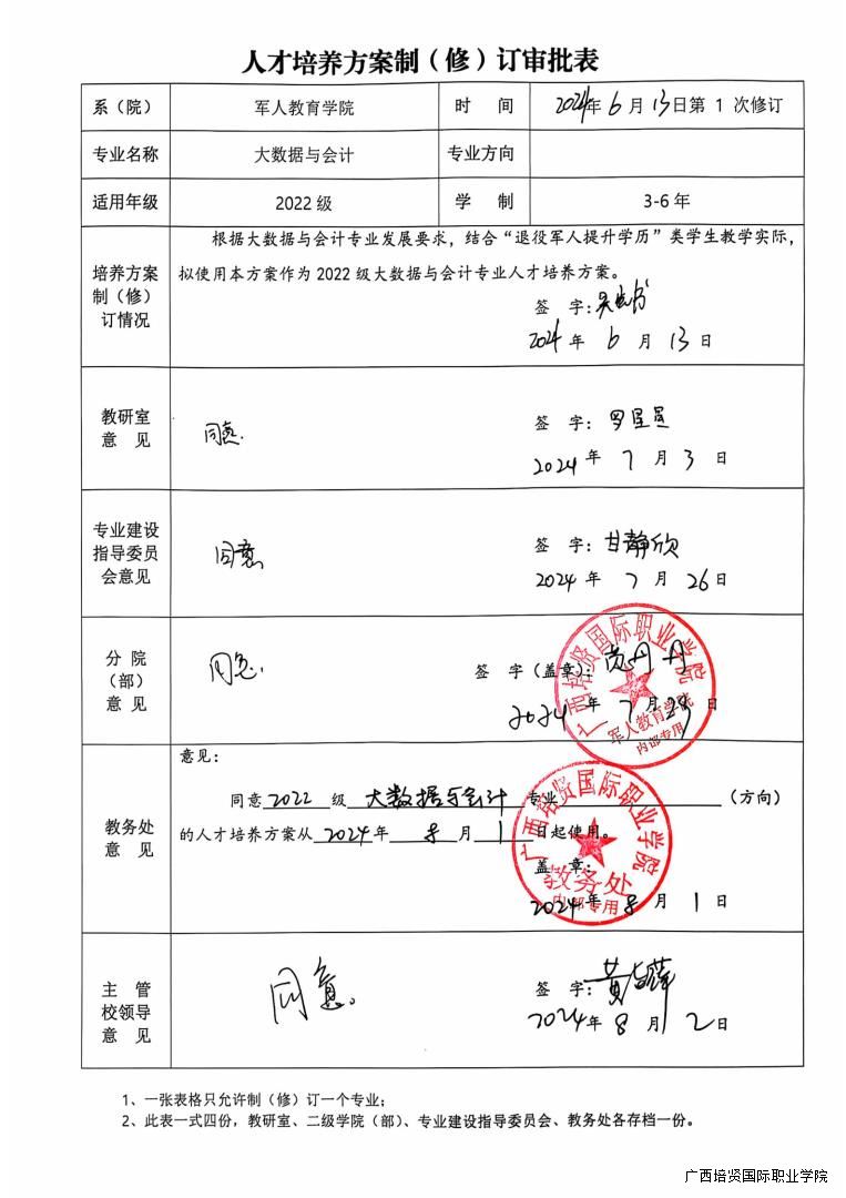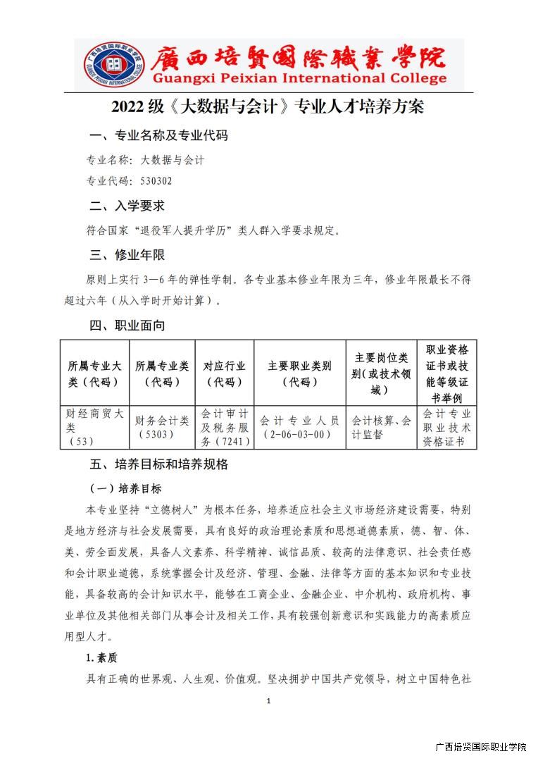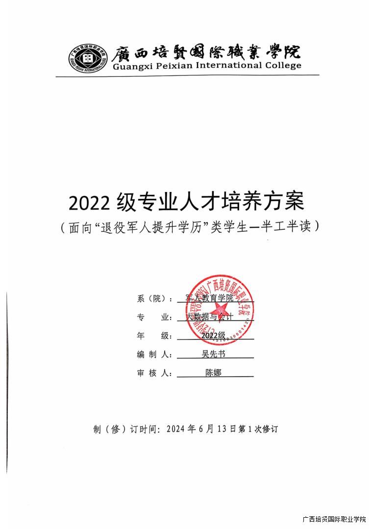广西彩神国际职业学院军人教育学院2022级大数据与会计专业人才培养方案(半工半读)