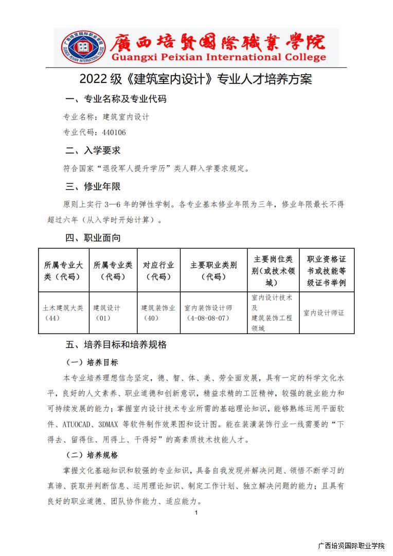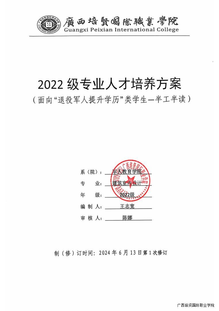 广西彩神国际职业学院军人教育学院2022级建筑室内专业人才培养方案(半工半读)