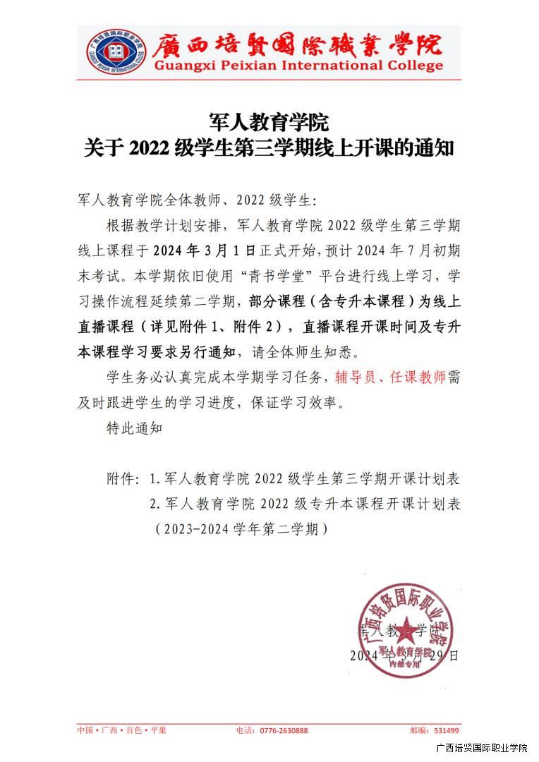 军人教育学院关于2022 级学生第三学期线上开课的通知