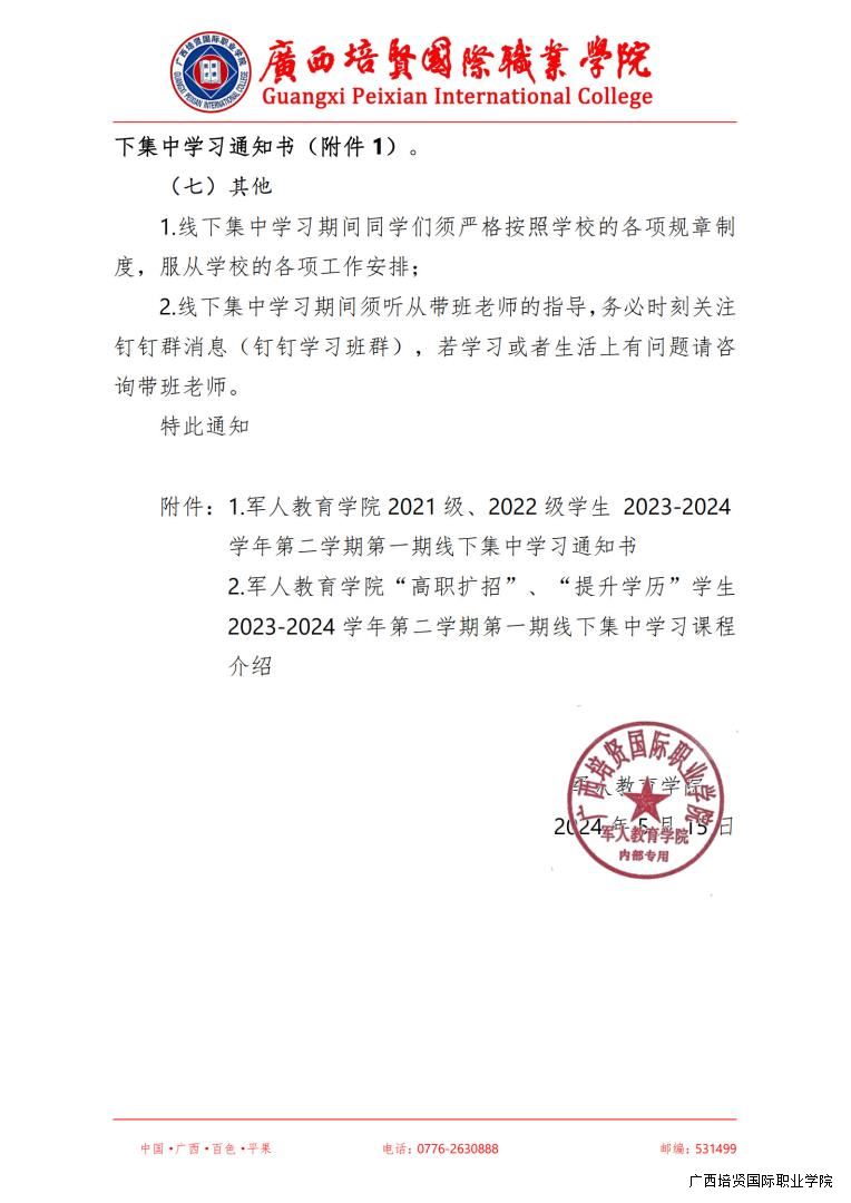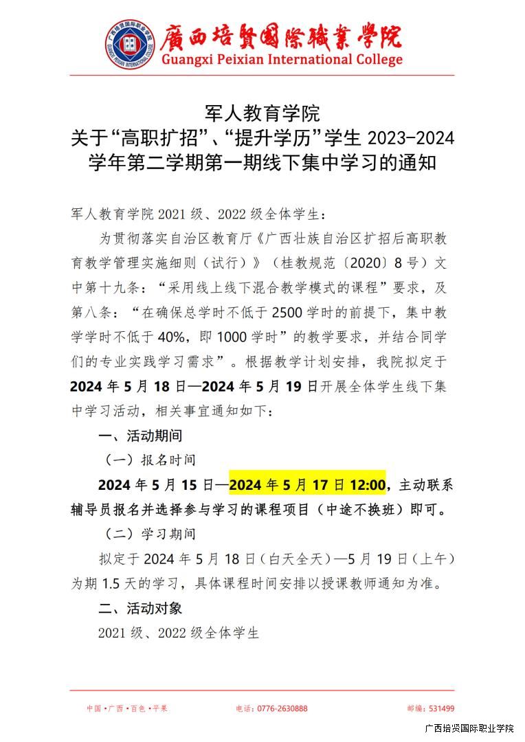 上一篇🤟🏼:军人教育学院关于“高职扩招” 🧙🟧、 “提升学历” 学生 2023-2024 学年第二学期第二期线下集中学习的通知