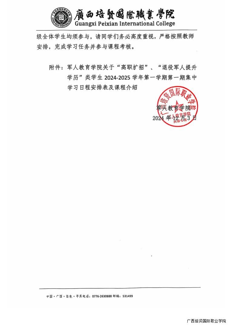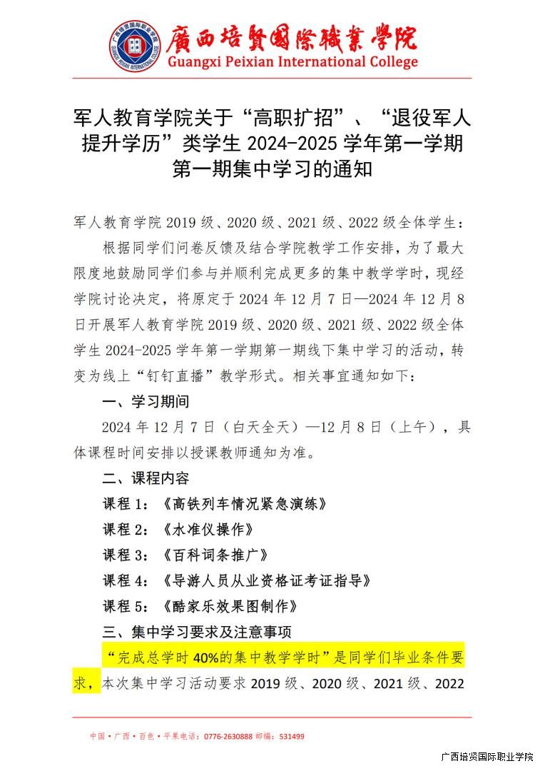 下一篇🕡:军人教育学院关于“高职扩招” 、 “退役军人提升 学历”类学生 2024-2025 学年第一学期 第二期线下集中学习的通知