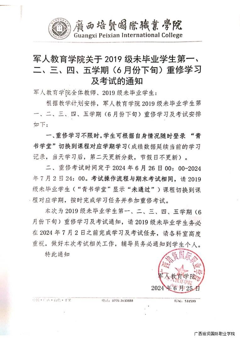 下一篇🛌🏼:军人教育学院关于2019级未毕业学生第一、二、三🌙👩🏽💻、四⛈、五学期(7月份上旬)重修学习及考试的通知