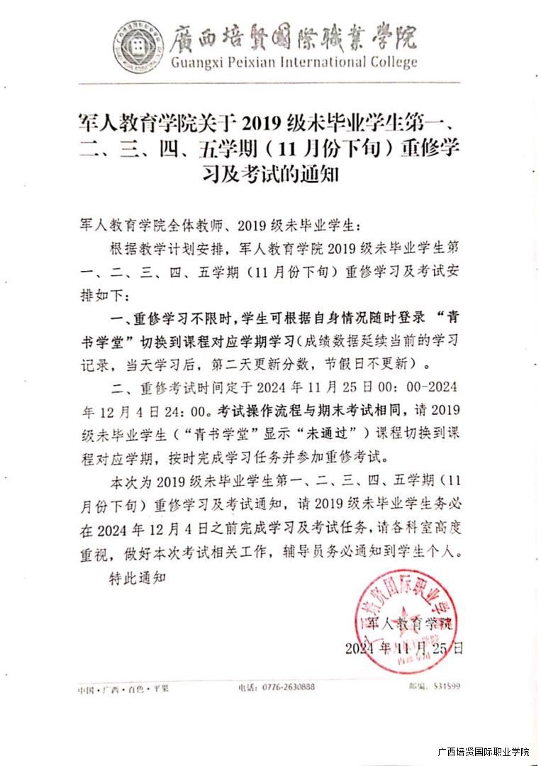 下一篇:军人教育学院关于2019级未毕业学生第一、二🧖🏻、三🧓🏿、四、五学期(12月份上旬)重修学习及考试的通知