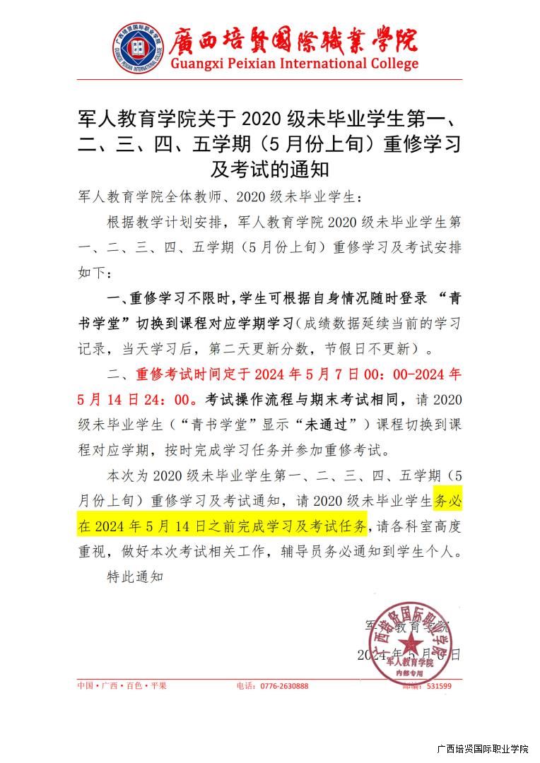 下一篇⚽️:军人教育学院关于2020级未毕业学生第一💣👨🏿🍼、 二、三、四🧛🏽♀️🍭、五学期(5月份下旬)重修学习 及考试的通知