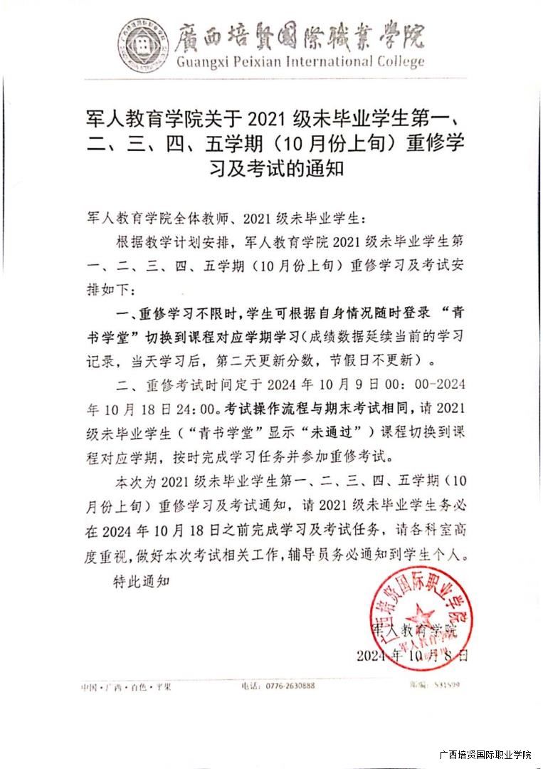1. 军人教育学院关于2021级未毕业学生第一🫴🏼☀️、 二、三、四🖕🛝、五学期(10月份上旬)重修学 习及考试的通知