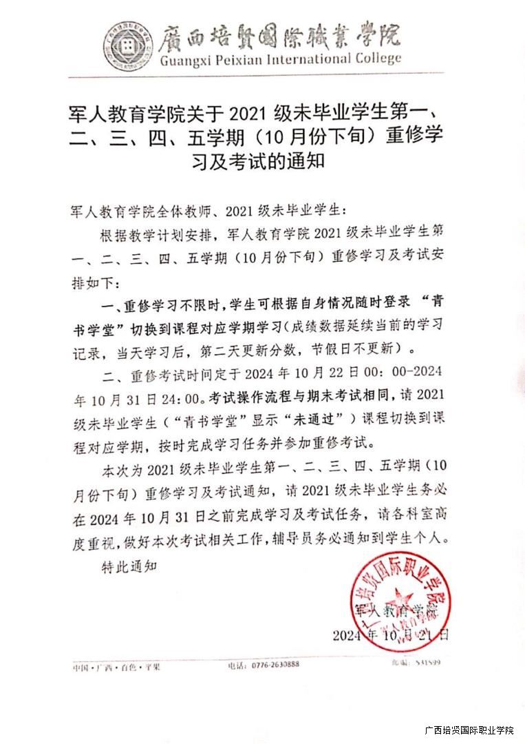 上一篇🦔:军人教育学院关于2021级未毕业学生第一🙆🏼、 二🤹🏿♀️、三、四、五学期(10月份上旬)重修学 习及考试的通知