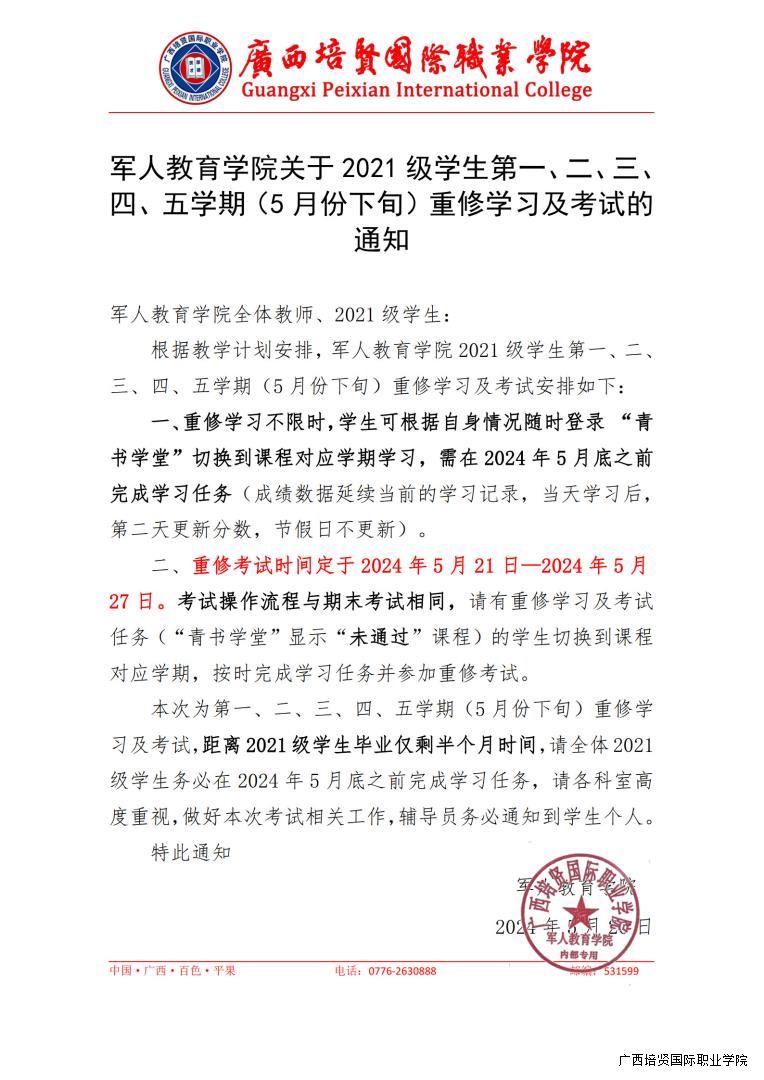 下一篇:军人教育学院关于2021级学生第一📇、二、三、 四、五学期(6月份下旬)重修学习及考试的通知