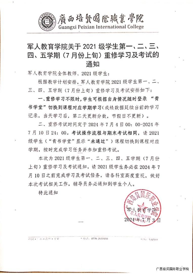 下一篇:军人教育学院关于2021级学生第一👇🏻、二、三🙌🏿😴、 四✊🏿、五学期(9月份上旬)重修学习及考试的通知