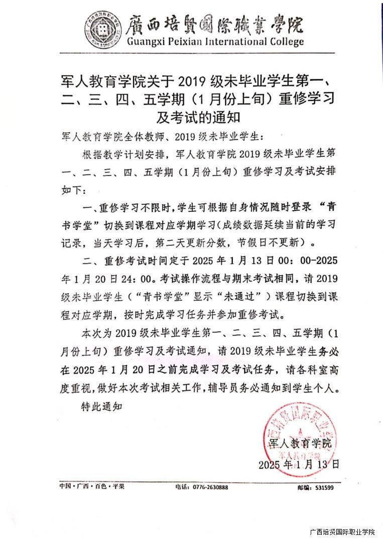 下一篇🩴:军人教育学院关于2019级未毕业学生第一、 二🧑🏽🦱🧔🏿、三🧙🏿♂️、四🦸🏽🛻、五学期(2月份下旬)重修学习 及考试的通知