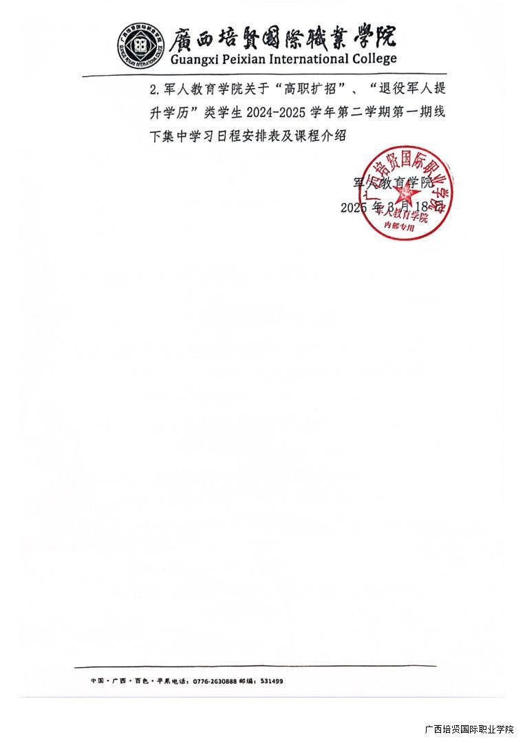 军人教育学院关于“高职扩招”、“退役军人提升 学历”类学生2024-2025学年第二学期 第一期线下集中学习的通知