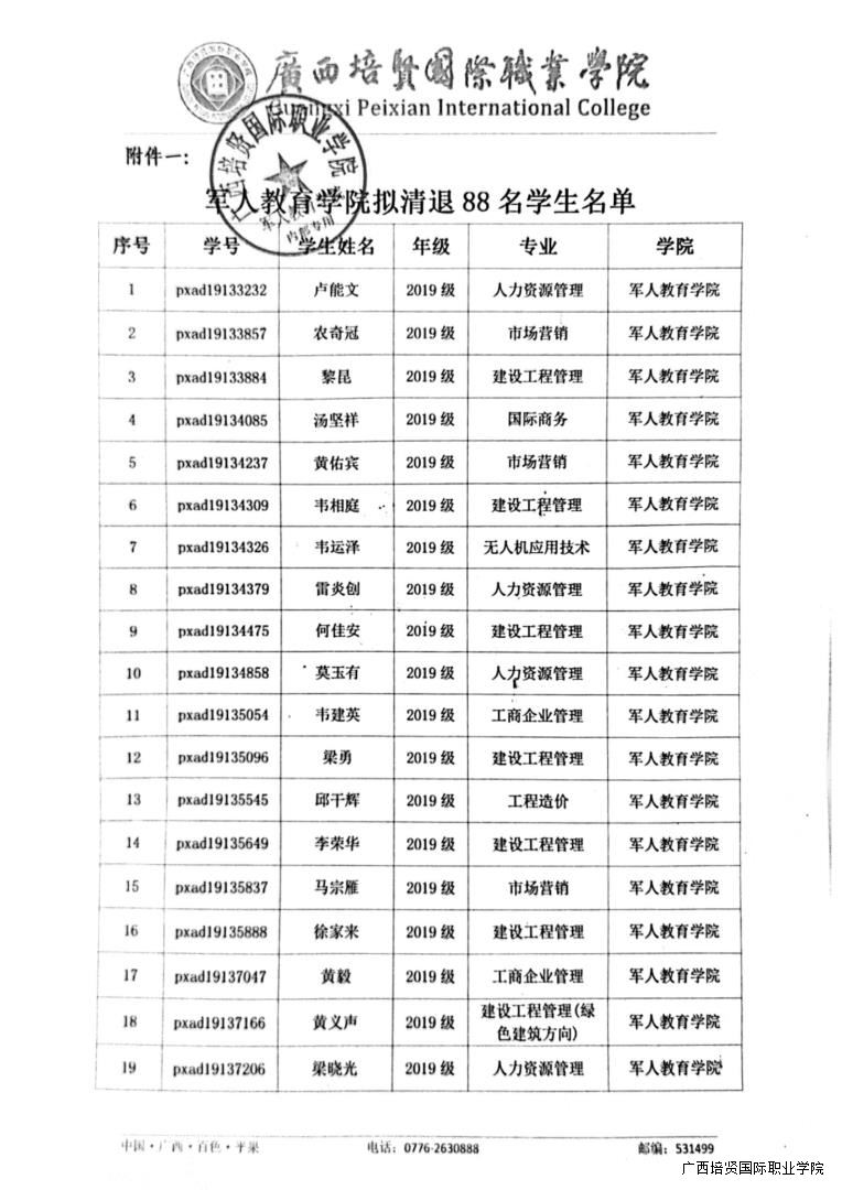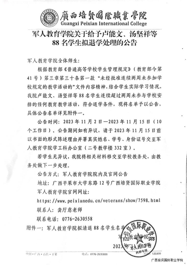 1. 军人教育学院关于给予卢能文、汤坚祥等88名学生拟退学处理的公告