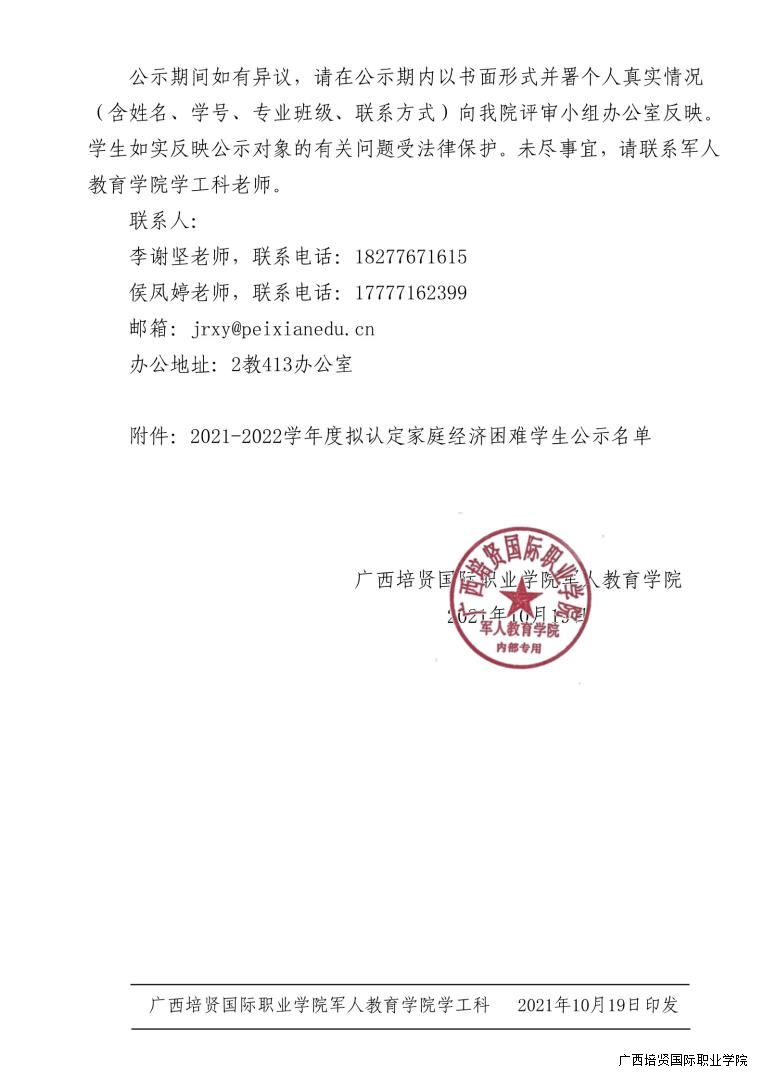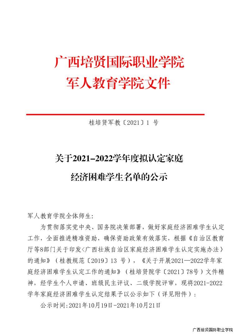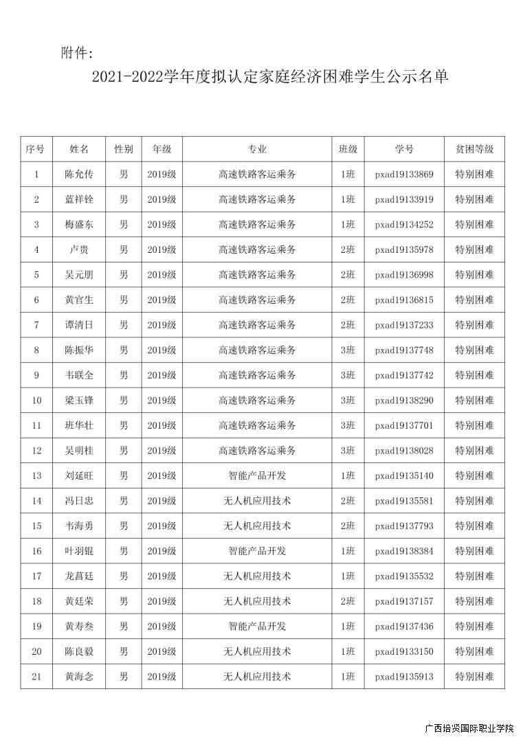 1. 关于2021-2022学年度拟认定家庭经济困难学生名单的公示